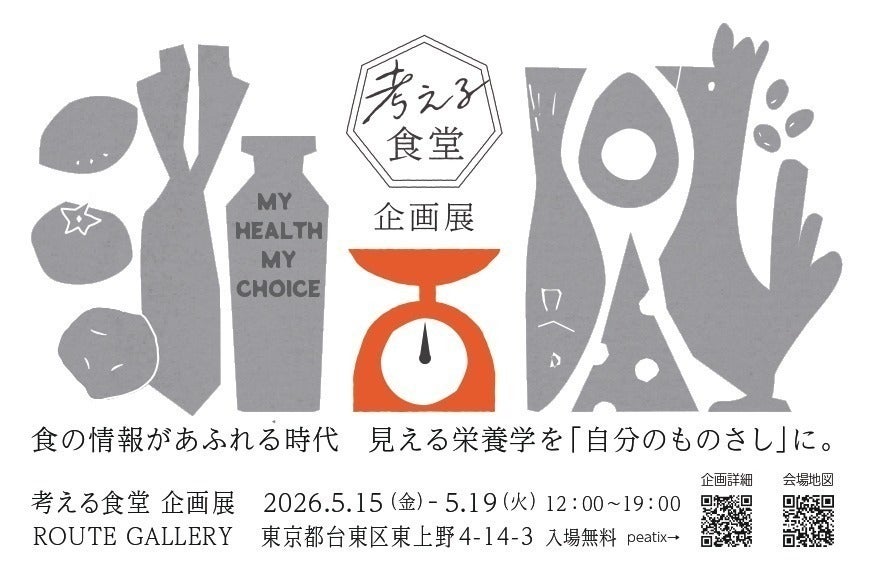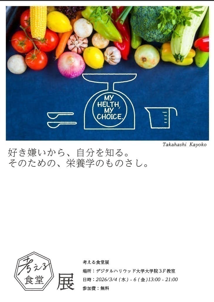 「考える食堂展」では、栄養学を“守るべきルール”として押しつけるのではなく、自分にとっての「ちょうどいい」を考えるための視点を、見て・考えて・体験できる形でひらいてみたいと思っています。