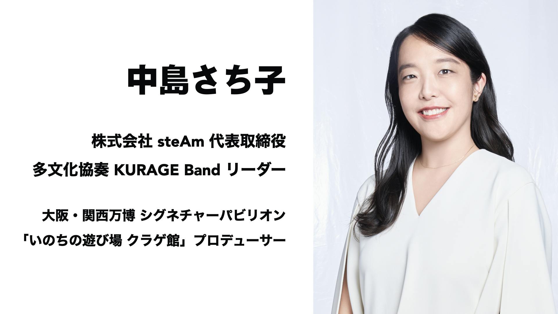 みなさん、こんにちは。2025年に開催された、大阪・関西万博シグネチャーパビリオン「いのちの遊び場 クラゲ館」プロデューサーの中島さち子です。音楽家・数学研究者・STEAM 教育者*でもあり、創造性の民主化を通じて Playful な共創社会を目指す株式会社 steAm 代表取締役も務めています。