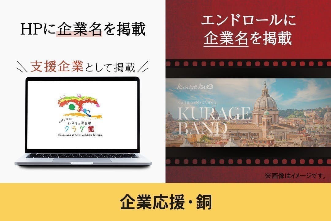 アフター万博 クラゲプロジェクト公式サイトに、協賛企業として企業名を1年間掲載いたします。