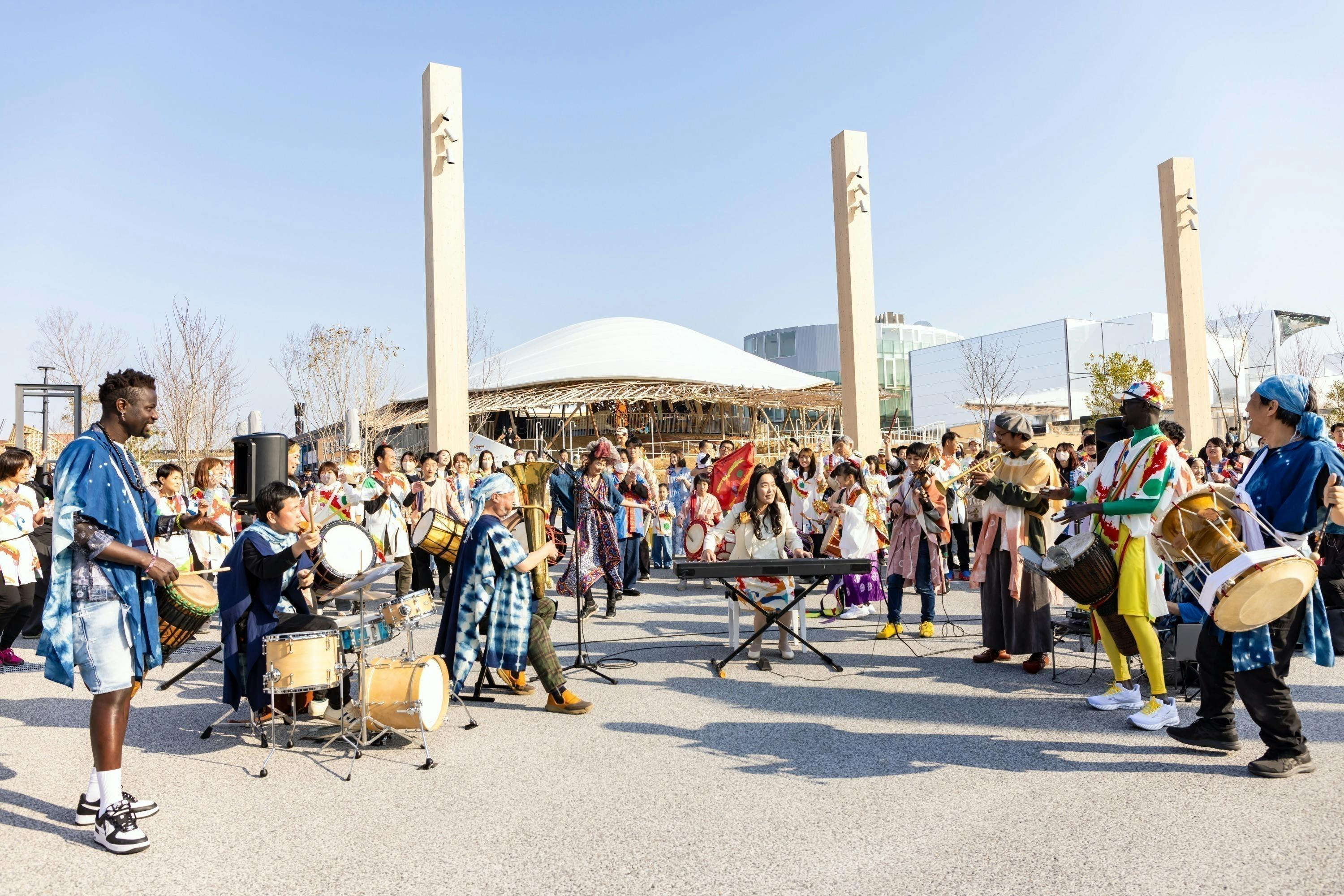 なお、万博期間中、世界中の文化や音楽の協奏のハブとなってきたKURAGE Band も、協奏ネットワークをさらに育てていくために、アフリカ諸国、イタリア、セルビア、ルーマニア、ヨルダンなどの国を訪問予定です。また、8月以外にも、2月28日にアフター万博として開催し、1200名以上がいらしていただき大成功に終わった「クラゲ祭り」のようなイベントも、大阪、そして日本全国、さらには国境を飛び越えて、海外でも開催し、多様ないのちがお互いを高めあえる「クラゲな場」を世界中につくっていきたいと願っています。