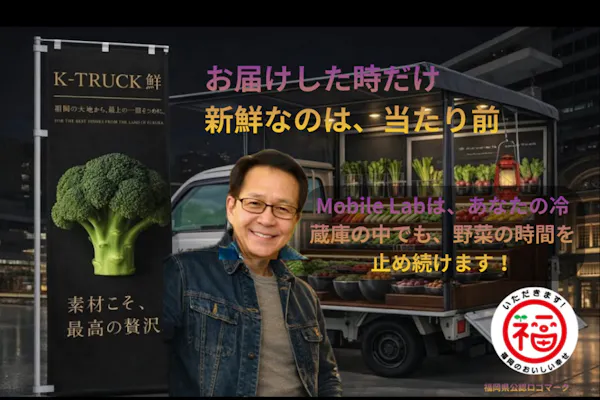 福岡・糸島の「おき農園」で今まさに旬を迎えた最高級の旬野菜を、Mobile Lab(移動式ラボ)がパッキングしてお届けします。