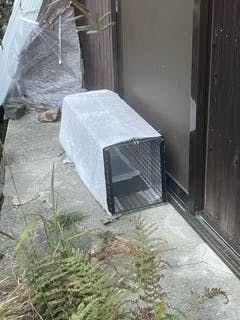 今週捕獲器に慣らす為ずっと置いたままにしています。しかし中に入って置いている餌を食べているのは近所で餌をもらっている手術済の猫達です・・・(カメラで確認済)