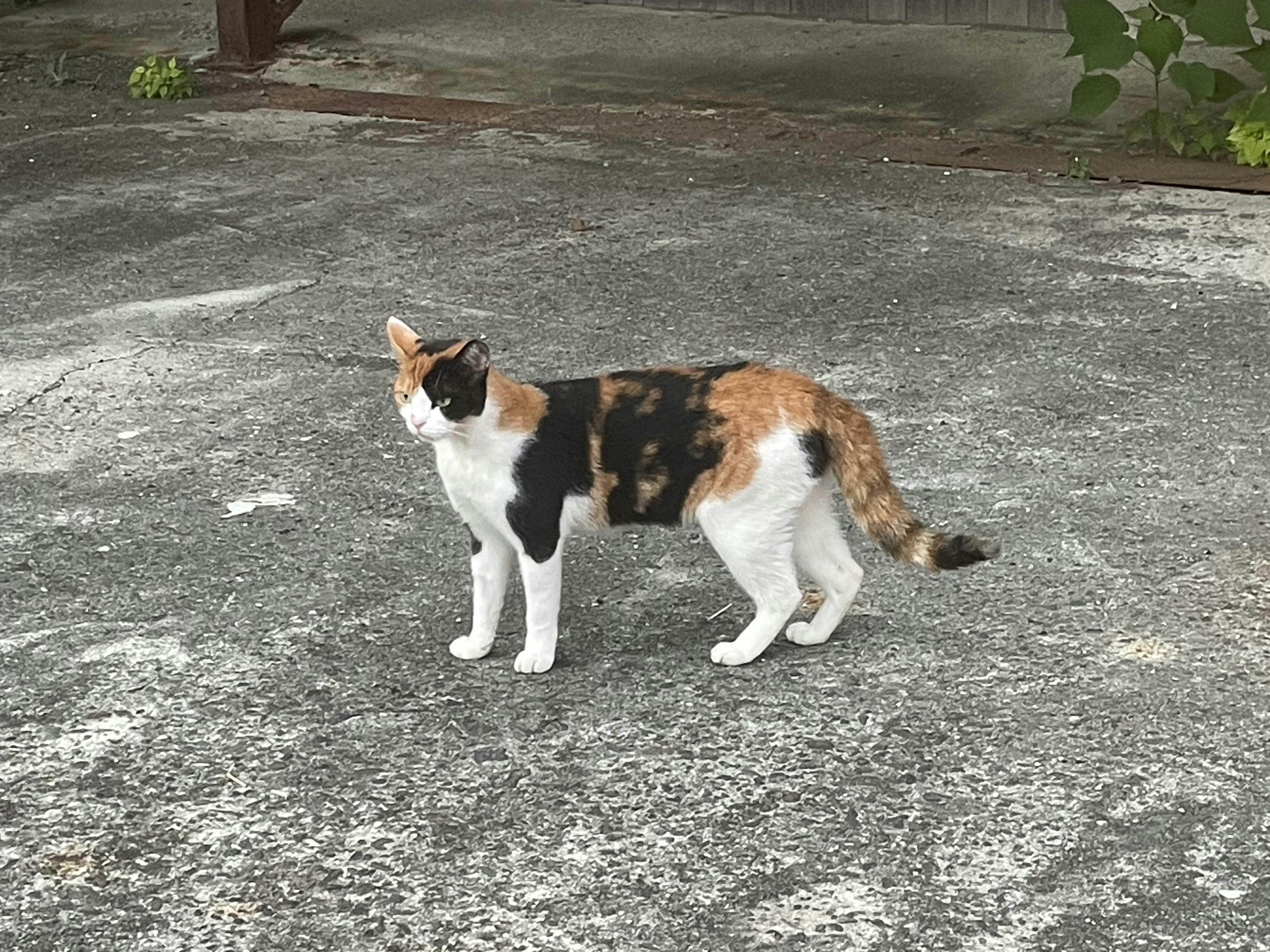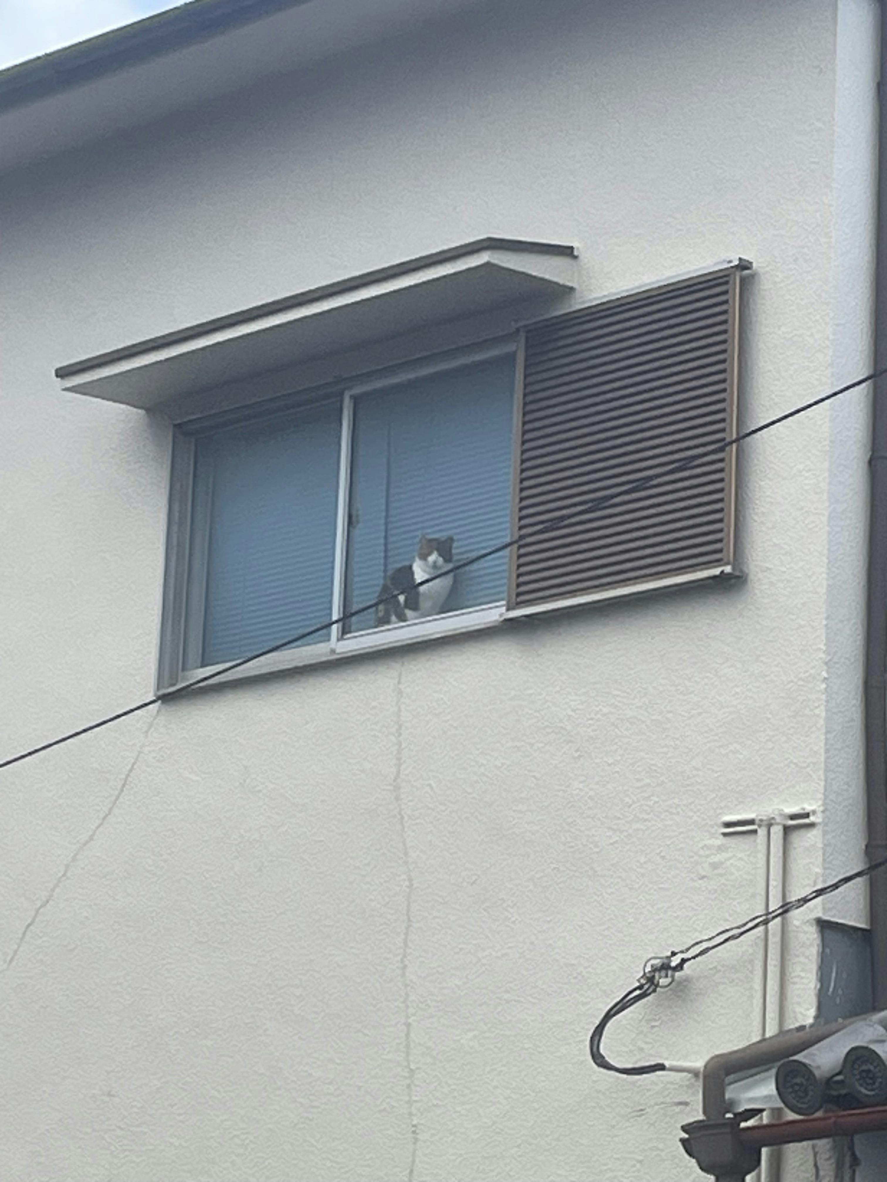 駐輪場で見かけた三毛猫、近所のおうちの2Fの窓で発見!放し飼い….飼い猫は勝手に手術出来ない…