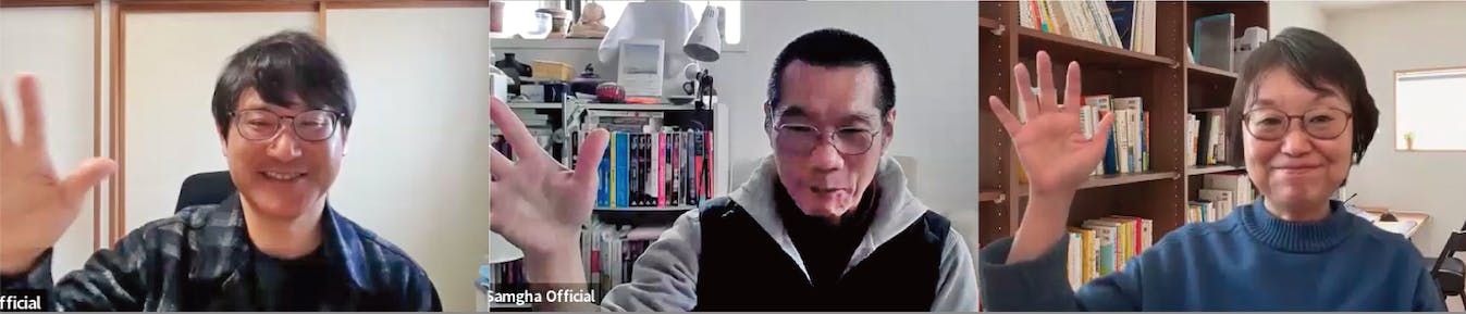 出演者は、前身の雑誌『サンガジャパン』(サンガ刊)の2010年の創刊時から編集に関わるサンガ新社の佐藤由樹さんと川島栄作さん。そして編集スタッフの森竹の3人です。