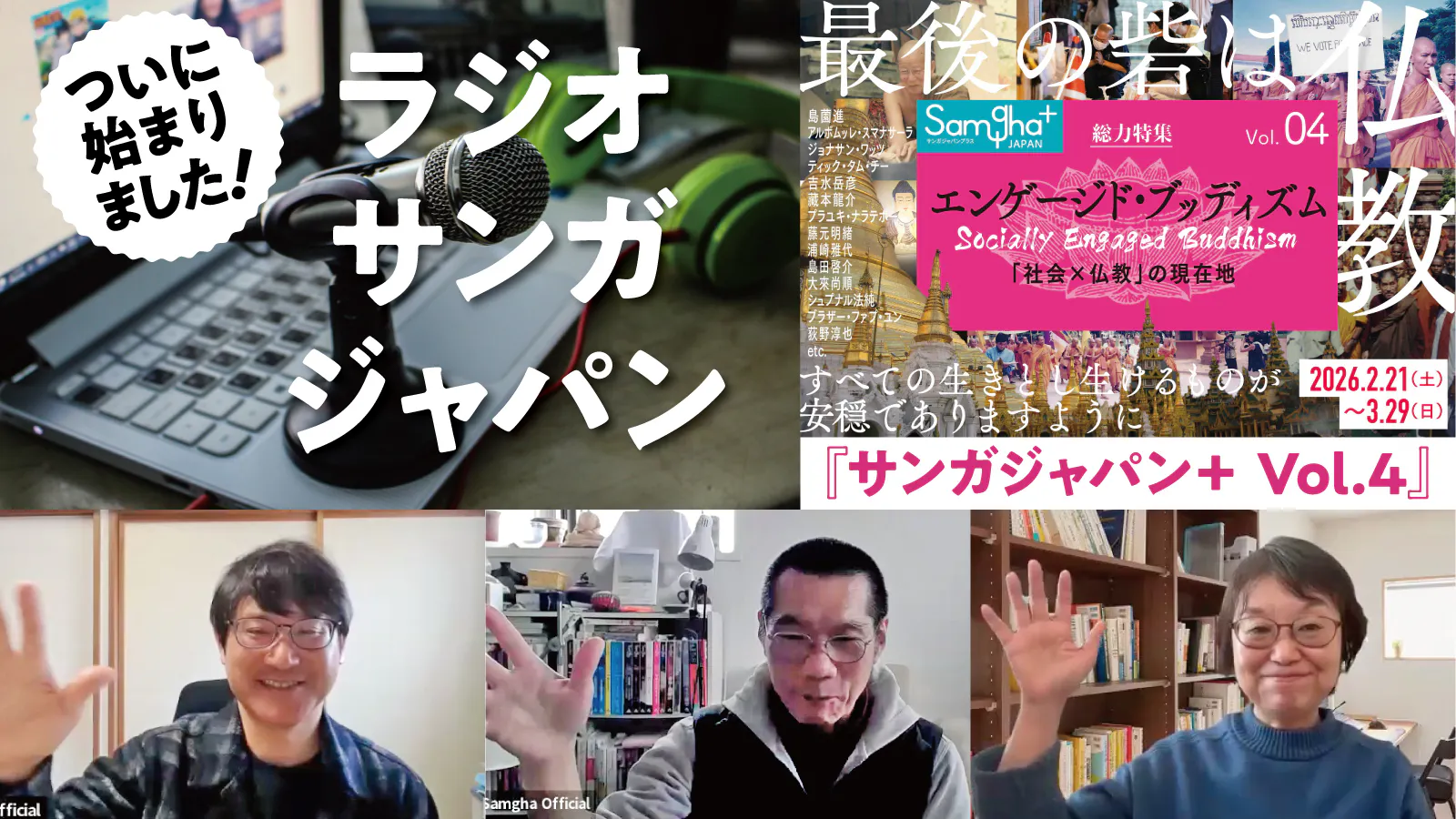 番組では、現在刊行に向けてクラウドファンディング中の『サンガジャパン+ 第4号』の特集「エンゲージド・ブッディズム」の話題をメインに取り上げました。