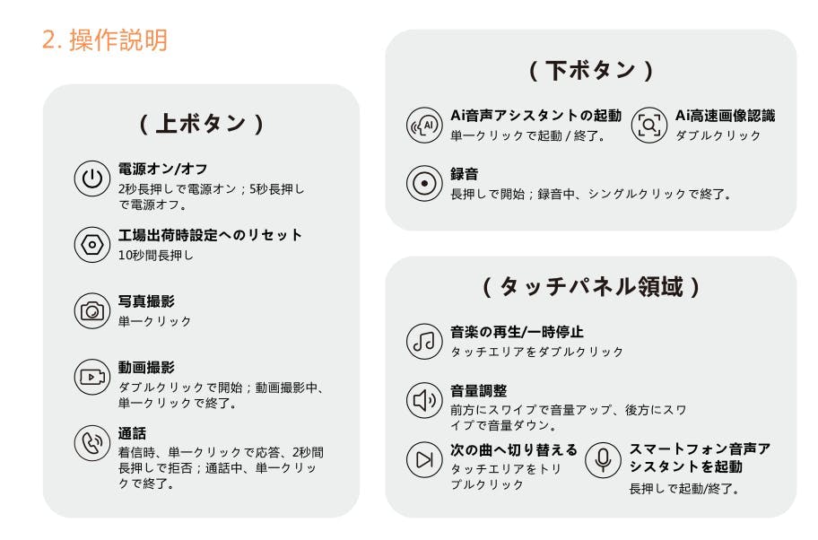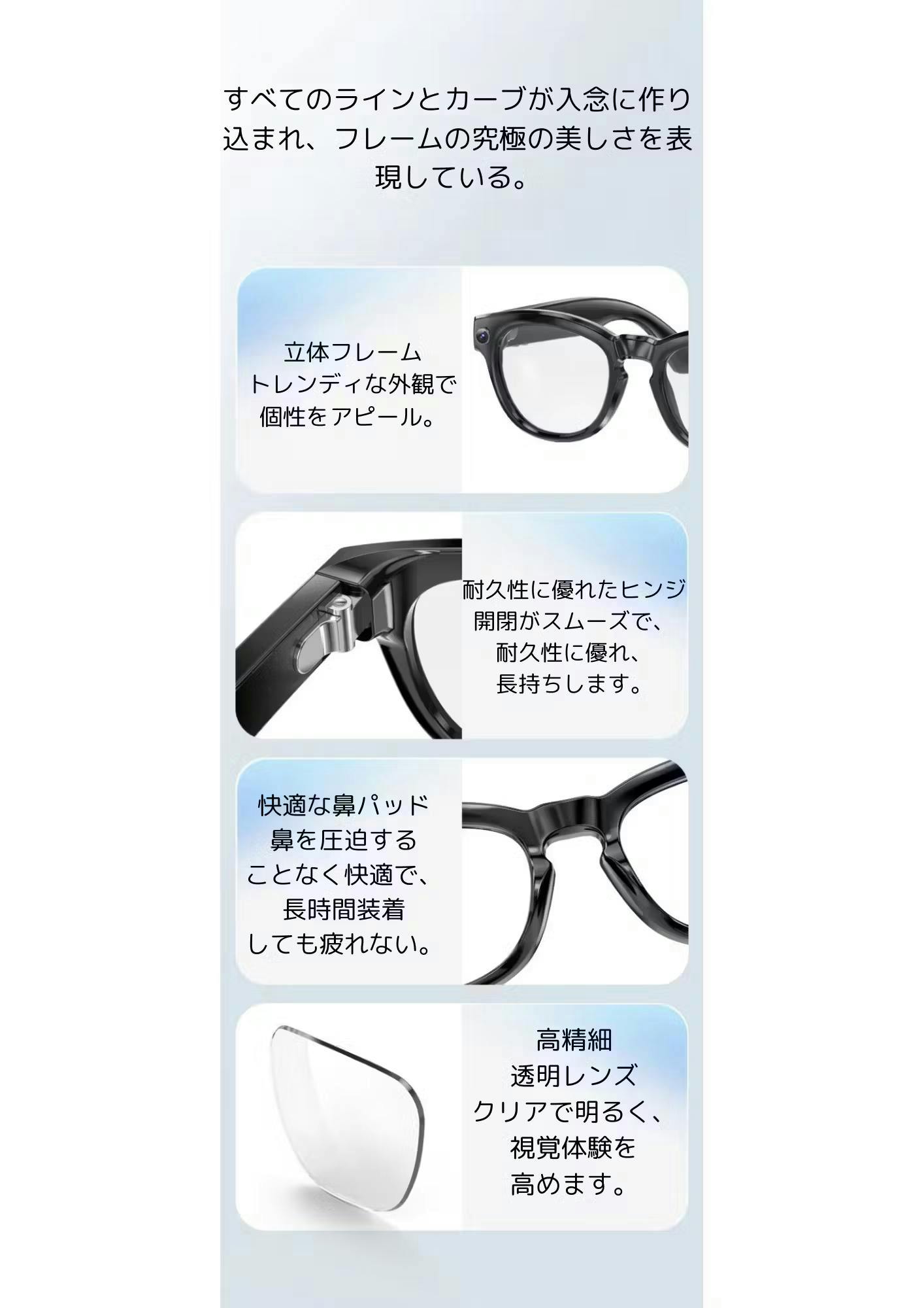 この革新的なスマートグラスは、先端のテクノロジーを備えた多機能デバイスとして、日常生活をより便利で楽しいものにします。以下に、その主な機能と仕様を詳しく説明します。