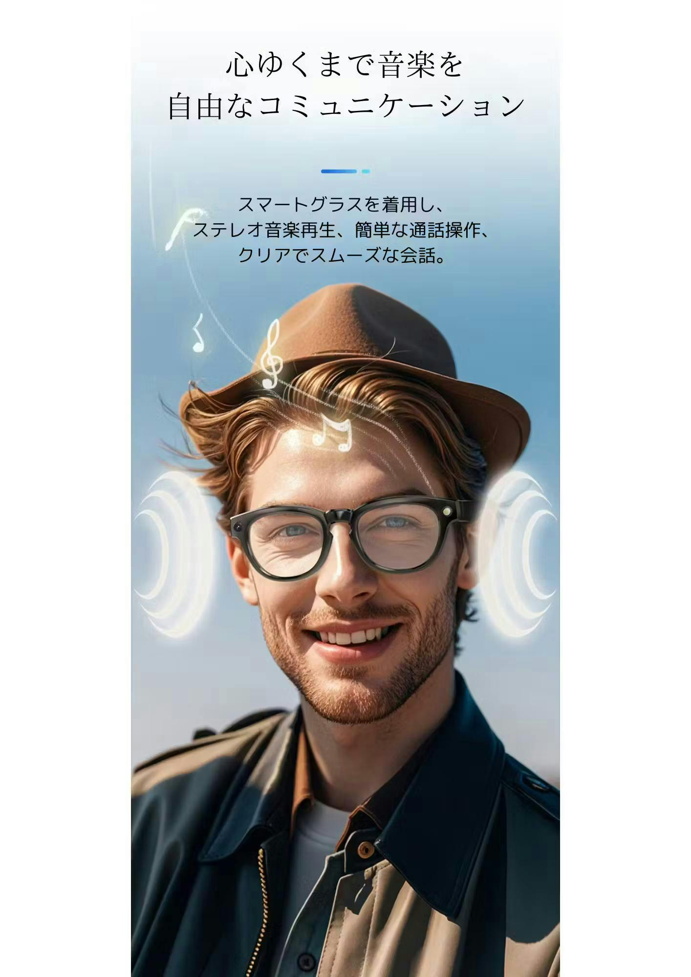 ダイナミックドライブ&サウンドキャビティ設計: 独自の音響設計で、聴覚障害を避けつつクリアなサウンドを楽しめます。インイヤーデザイン: 周囲の音を聞きながら、音楽を楽しみ、安全を確保できます。オープンソリューション: 音楽や通話に対応しながら、メガネからの通知も受け取れます。