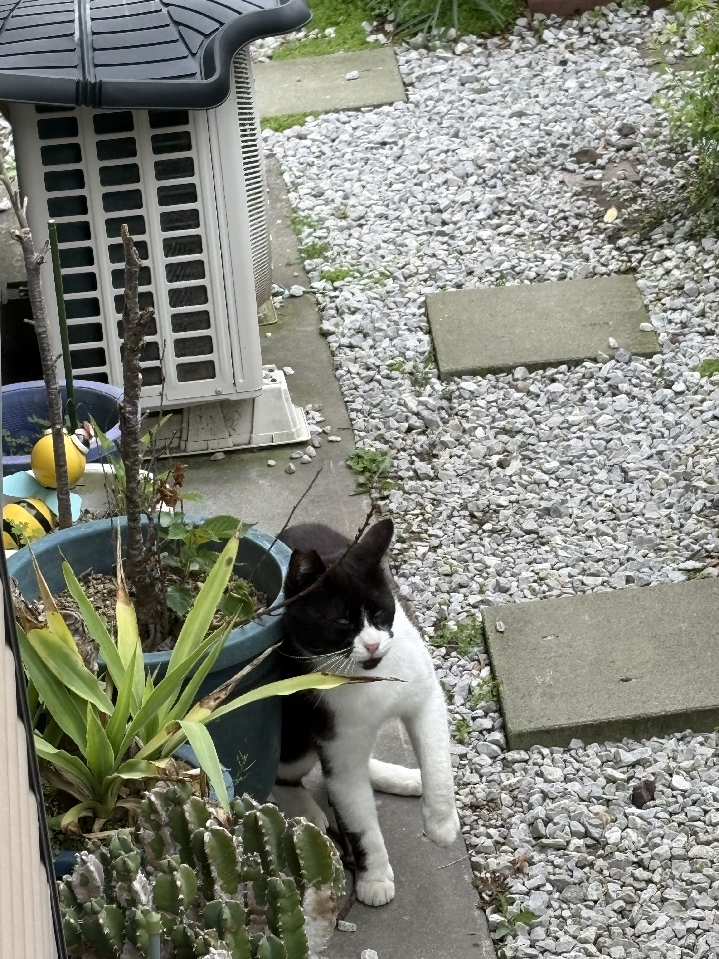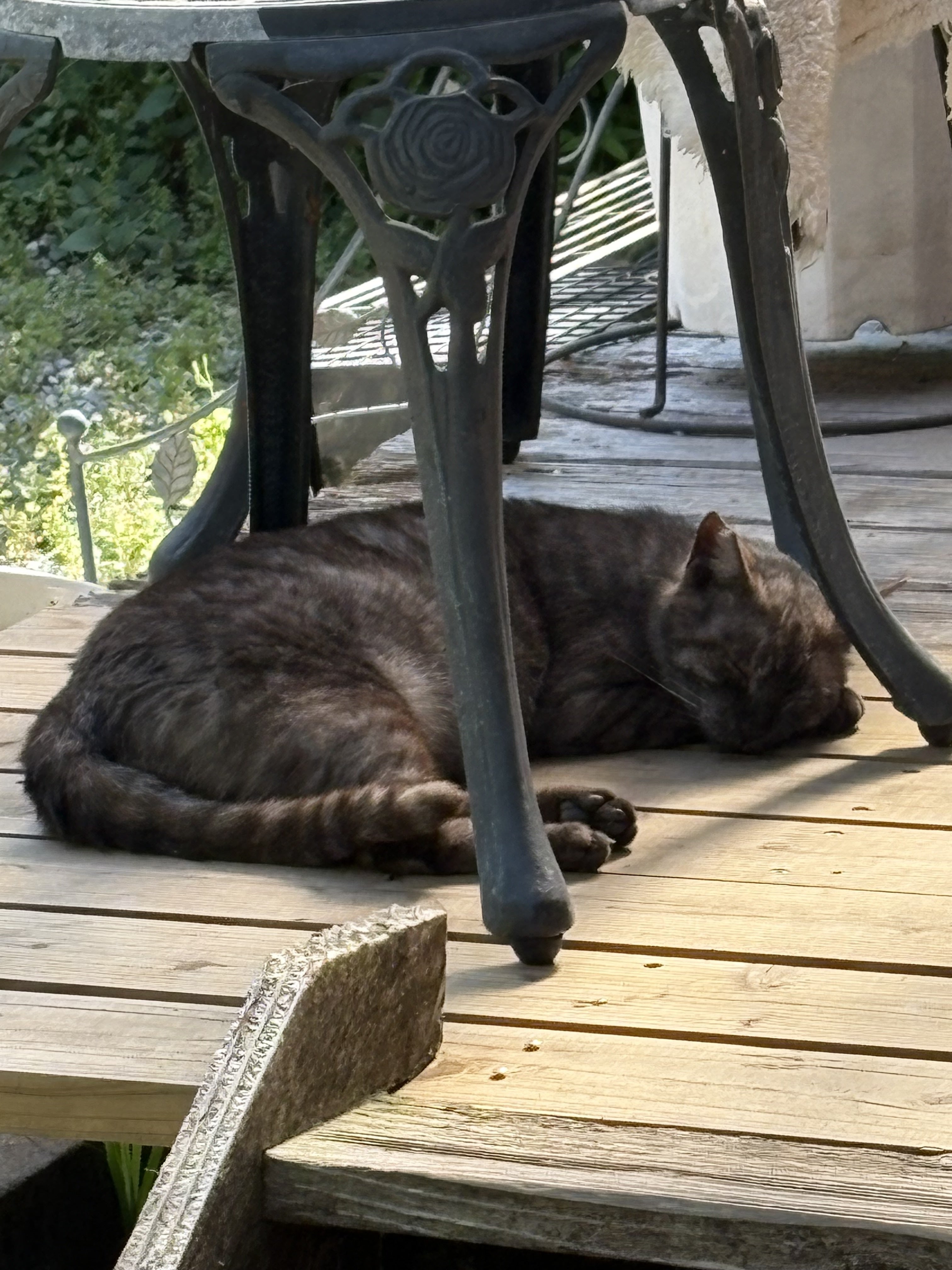 2026/04/17 07:12画像の子は、しまじろう君と呼んでいる男の子ニャンコです。この子は昨年末足を怪我して傷口が壊死しかかっていた子で保護した子なのですが、完治したので先だってリリースしました。が、リリースしてもどこにも行かずウッドデッキから離れません。保護した当時は、少しずつしか歩けない状態でしたので保護するのに苦労しなかったのですが人間に対して相当な不信感というか敵意をもっており、ケージのなかにご飯を入れるのも時に引っかかれながらという状況でしたが、今では近くに来て私の顔をジーッと見てます。いつも隊長と副隊長の側にいて、他の子達とも仲良くしています。食欲も旺盛で、木登りしたり敷地内をお散歩したり他の子と戯れあったりして過ごしています。元気になってくれて本当に嬉しい限りです。 もっと見る