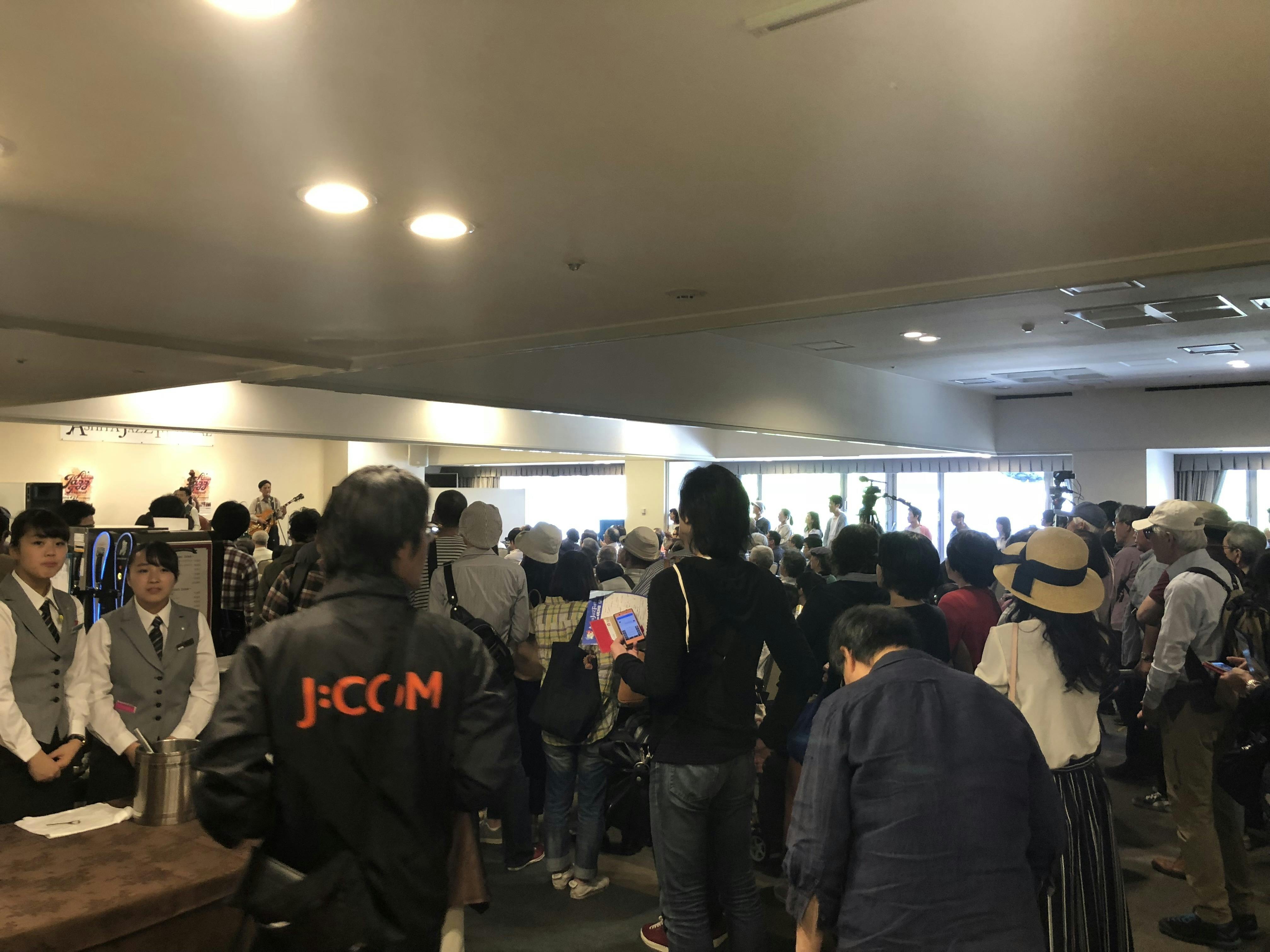 開場前から並ぶ観客と、大ホールにあふれる人々。