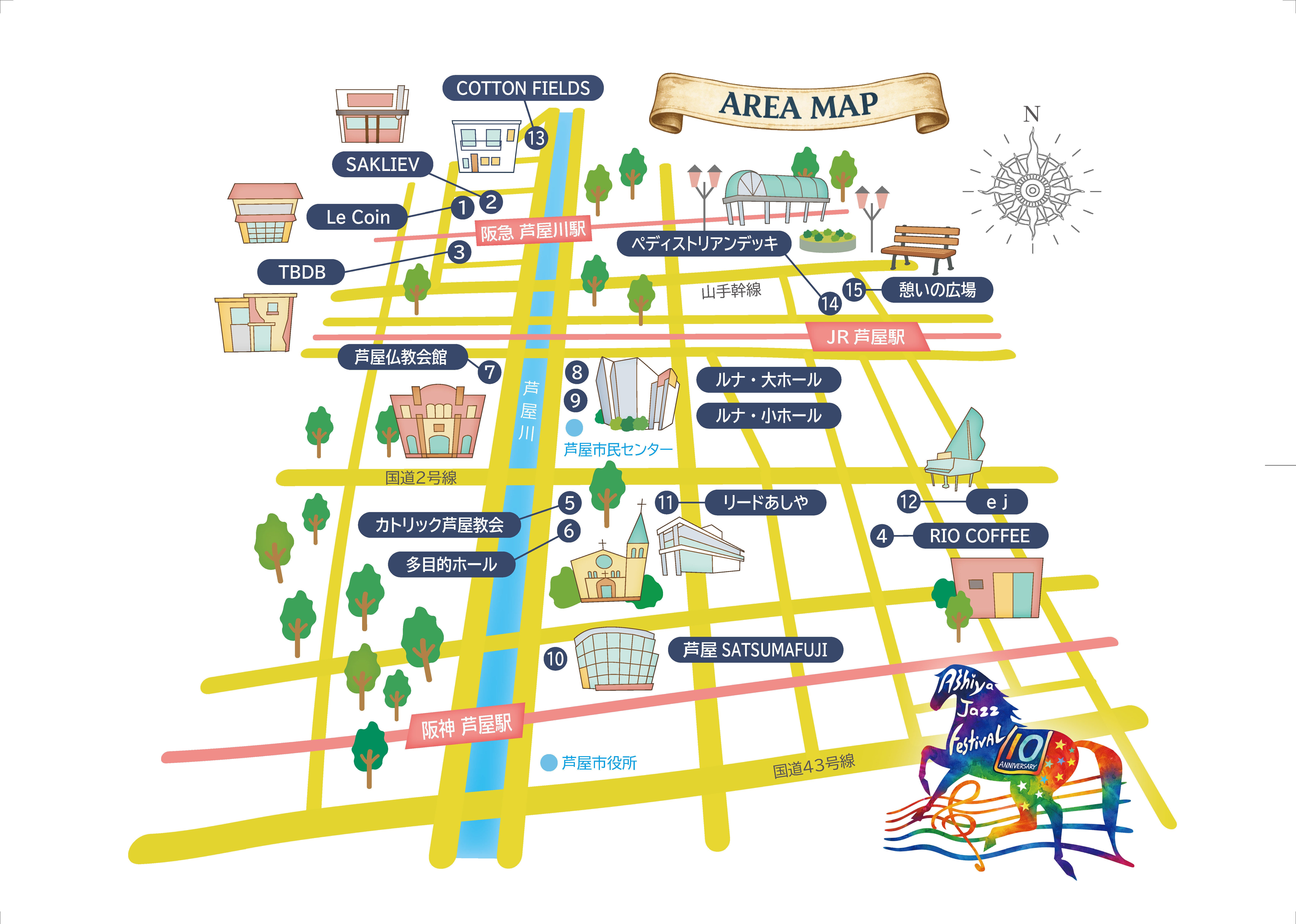 芦屋ジャズフェスティバルの会場マップが完成しました。