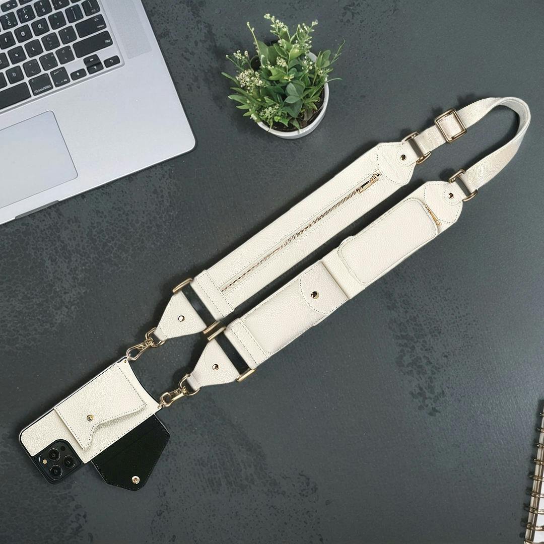 【「ママの荷物、多すぎ問題」を解決したかった】 特に小さなお子様がいるママさんは、常に荷物がいっぱい。抱っこをしながらスマホを取り出したり、財布を探したりするのは一苦労です。私自身、周囲のママたちの苦労を見て「もっと機能的な、これ1本で完結するショルダーストラップがあれば」と強く感じました。そこで、3つの独立したコンパートメントを持つ本製品を企画しました。