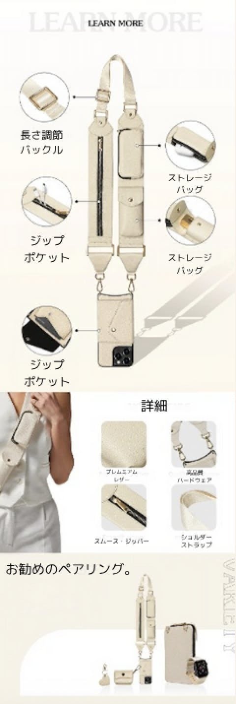 【「ママの荷物、多すぎ問題」を解決したかった】 特に小さなお子様がいるママさんは、常に荷物がいっぱい。抱っこをしながらスマホを取り出したり、財布を探したりするのは一苦労です。私自身、周囲のママたちの苦労を見て「もっと機能的な、これ1本で完結するショルダーストラップがあれば」と強く感じました。そこで、3つの独立したコンパートメントを持つ本製品を企画しました。