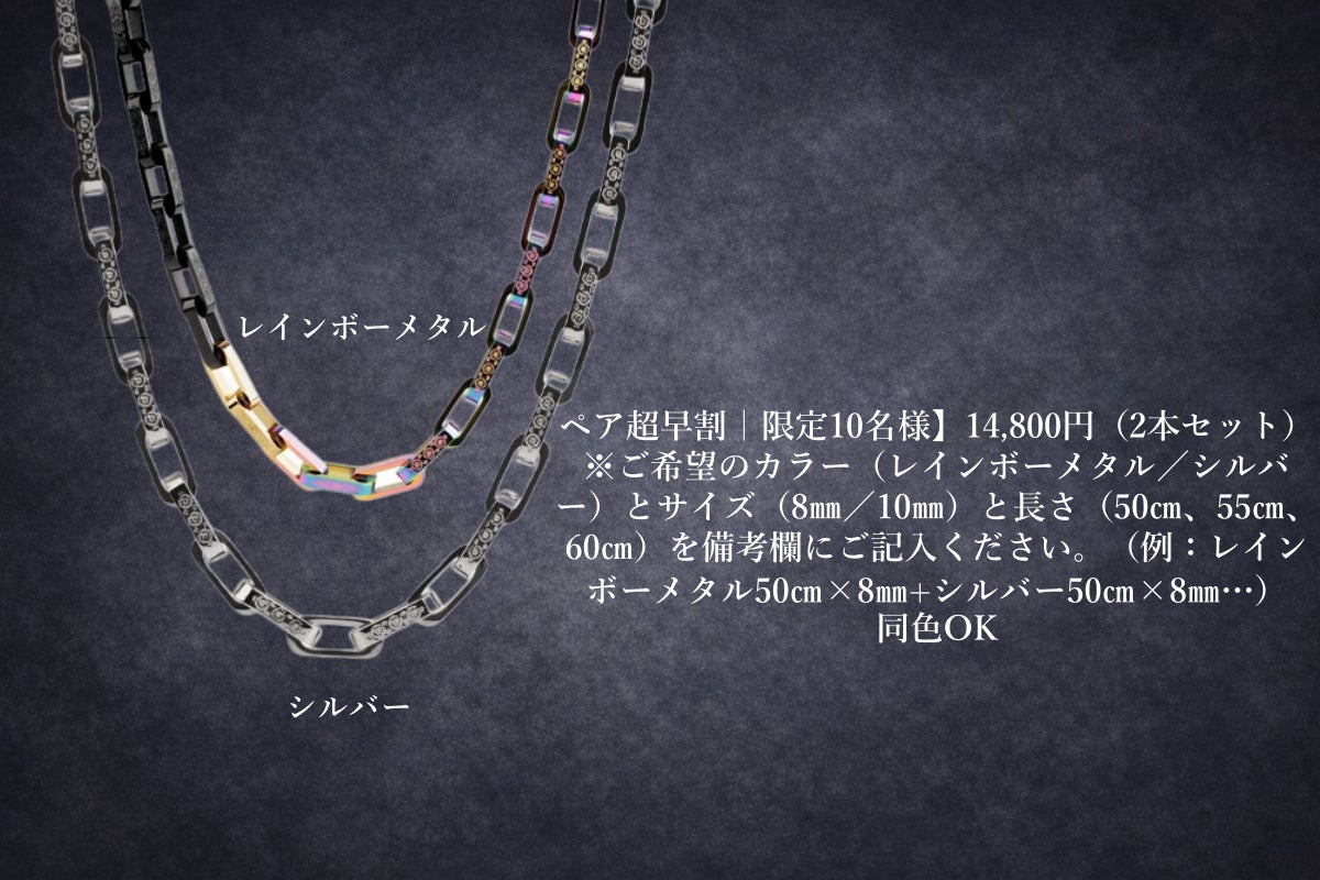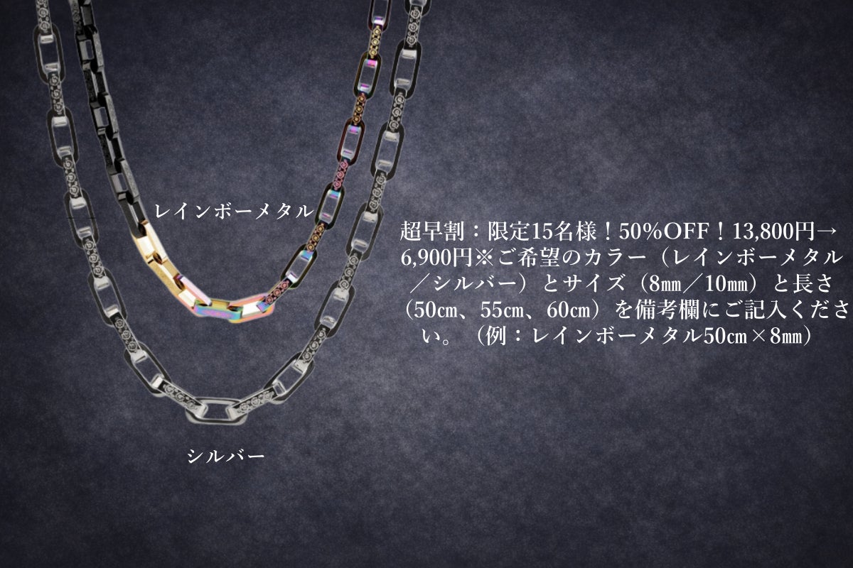 ※ご希望のカラー(レインボーメタル/シルバー)とサイズ(8㎜/10㎜)と長さ(50㎝、55㎝、60㎝)を備考欄にご記入ください。