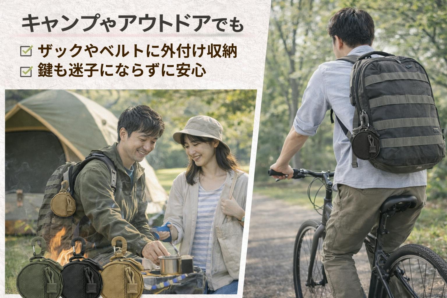 ★4点セットリターンを追加しました★鍵も小物もまとめる外付けマルチポーチ。|1000Dナイロン×カラビナ付き