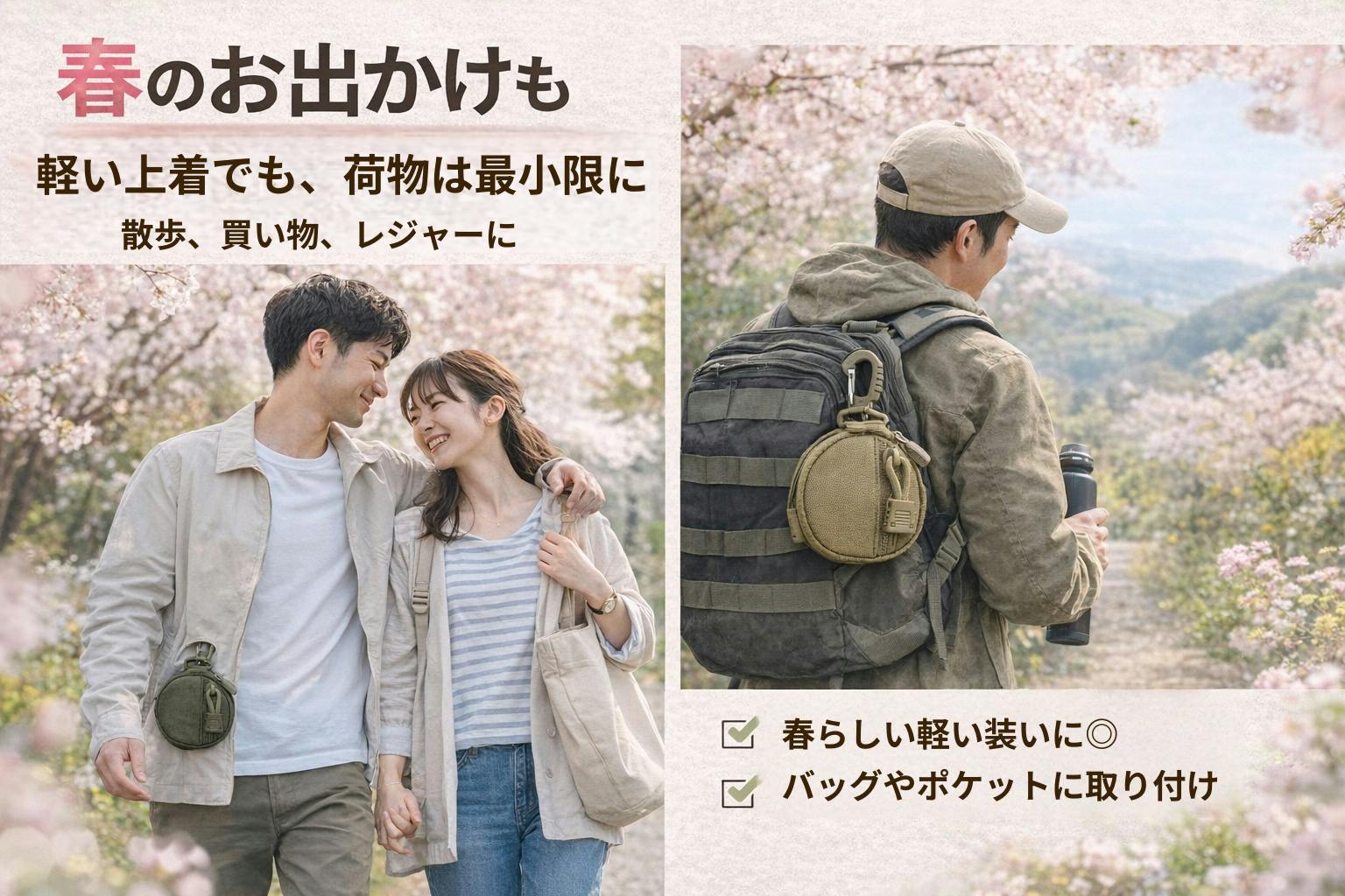 バッグ、ベルト、リュックなどに簡単装着。