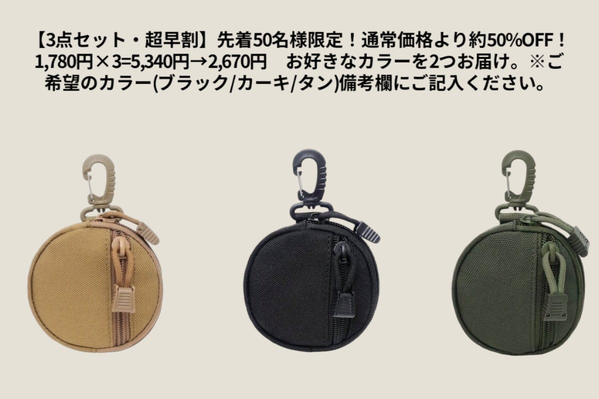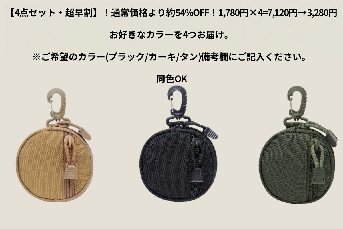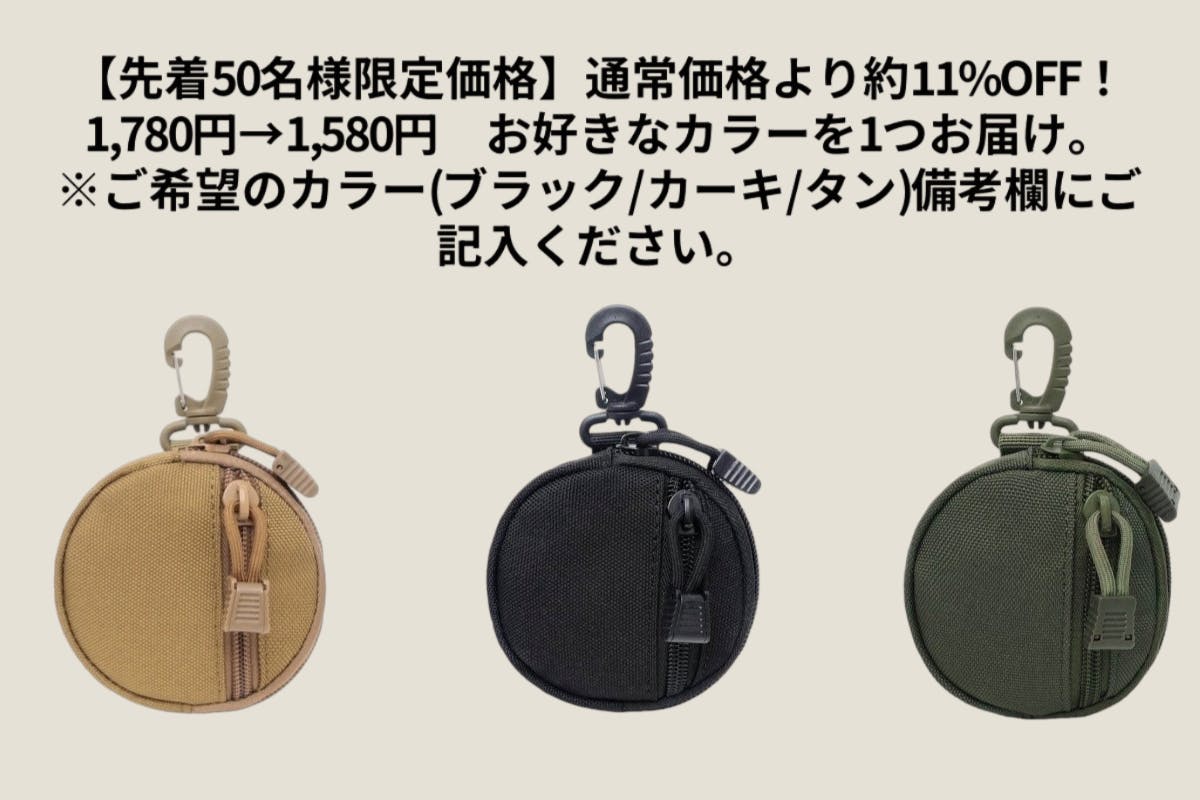 2026/03/11 20:00いつもたくさんのご支援、本当にありがとうございます。このたび、ご要望の多かった 4点セットのリターン を追加いたしました。【4点セット・超早割】通常価格より 約54%OFF1,780円 × 4 = 7,120円 → 3,280円お好きなカラーを4点お選びいただけます。・ブラック・カーキ・タン※同色もお選びいただけます。仕事用・休日用・旅行用など、用途ごとに使い分けるのもおすすめです。家族やパートナーとシェアする使い方も人気です。数量限定となりますので、気になる方はぜひチェックしてみてください。シェアのお願いもしよろしければ、SNSなどでこのプロジェクトをシェアしていただけると嬉しいです。皆さまの応援が、次の目標への大きな力になります。引き続き、よろしくお願いいたします。株式会社NOEプロジェクトスタッフ一同 もっと見る目標200%達成のご報告!!鍵も小物もまとめる外付けマルチポーチ。|1000Dナイロン×カラビナ付き
