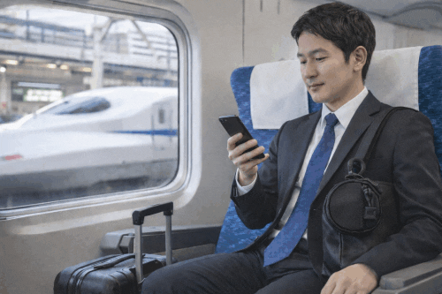出張の朝。空港で、スマホを確認しながらゲートへ急ぐ。
