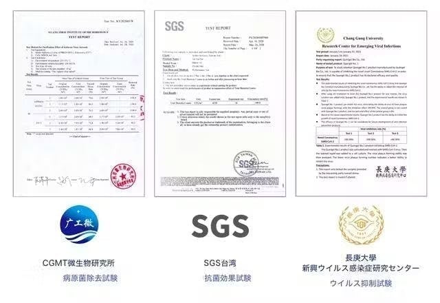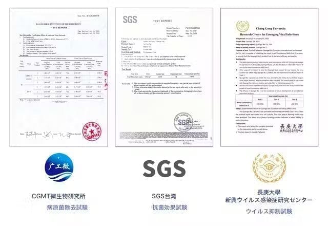 -検査実施時期:SGS台湾2020年5月26日、CGMT微生物研究所2020年6月28日、長庚大学新興ウイルス感染症研究センター2021年1月1日〜1月31日、