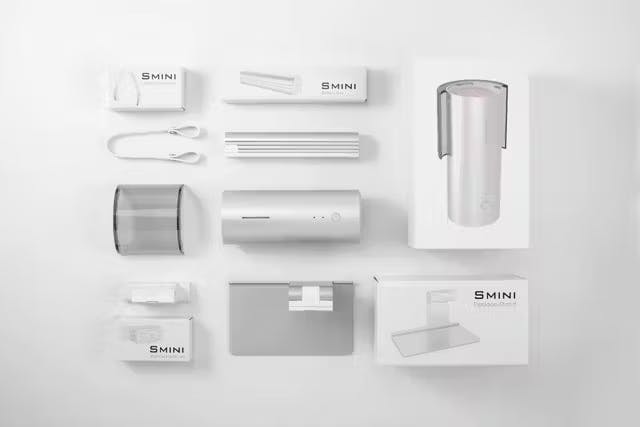 【Smini】は置く場所に困らず持ち運びに便利なコンパクトボディながら、強力パワーでキレイな空気を放出。大きさは500mlのビール缶と同程度。
