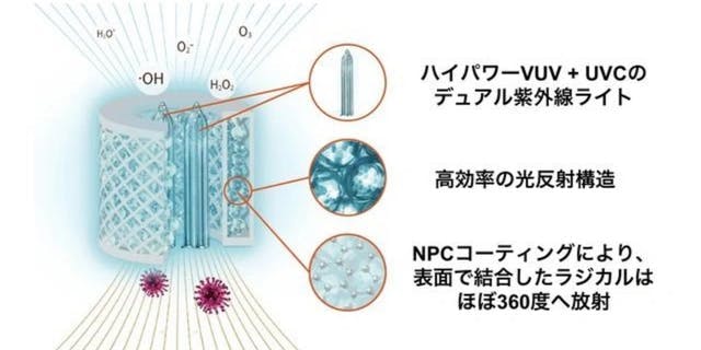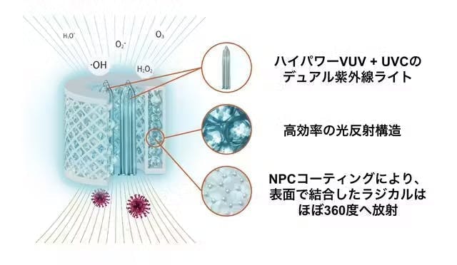 新抑制技術は、わずか0.026秒でウイルスに反応し99.9%を除去します。