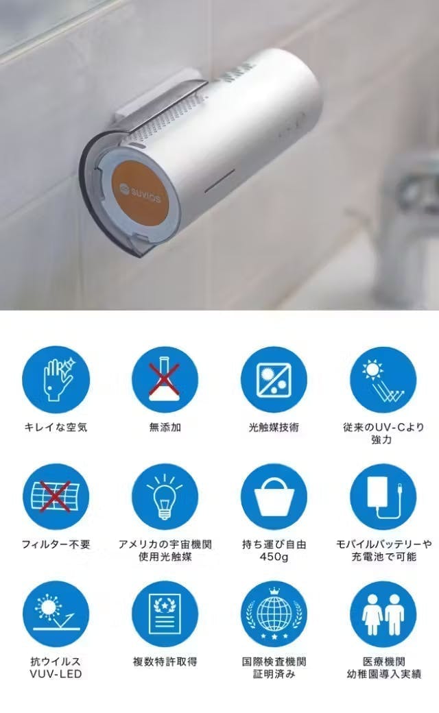 -検査実施機関名称とURL:SGS台湾、CGMT微生物研究所、長庚大学新興ウイルス感染症研究センター(https://www.sgs.com/ja-jp/services/taiwan-roc-taiwan、https://suvios.com/sanitizer/smini/)