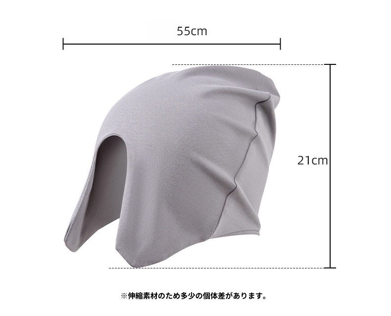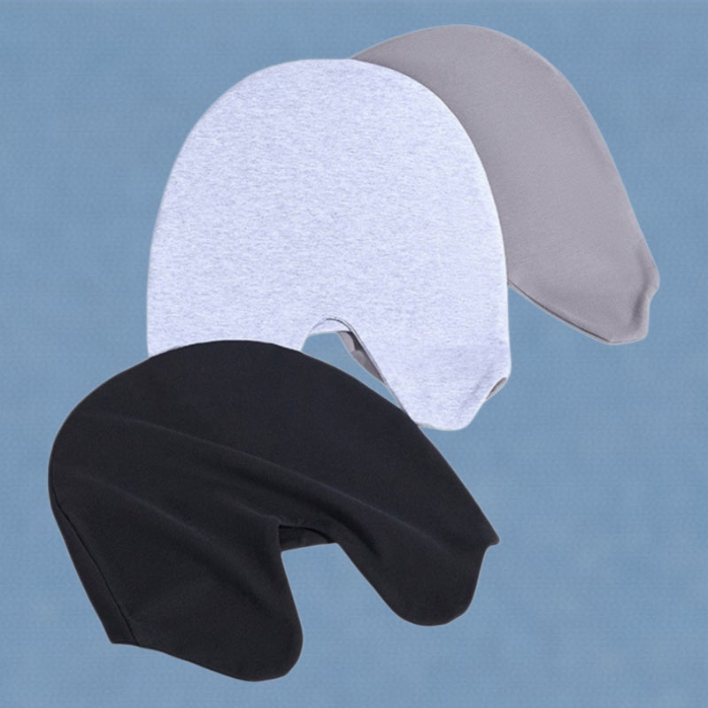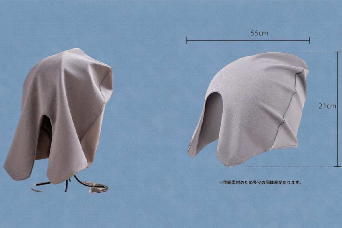 一般的な平面アイマスクとは違い、頭部を包み込む立体構造。