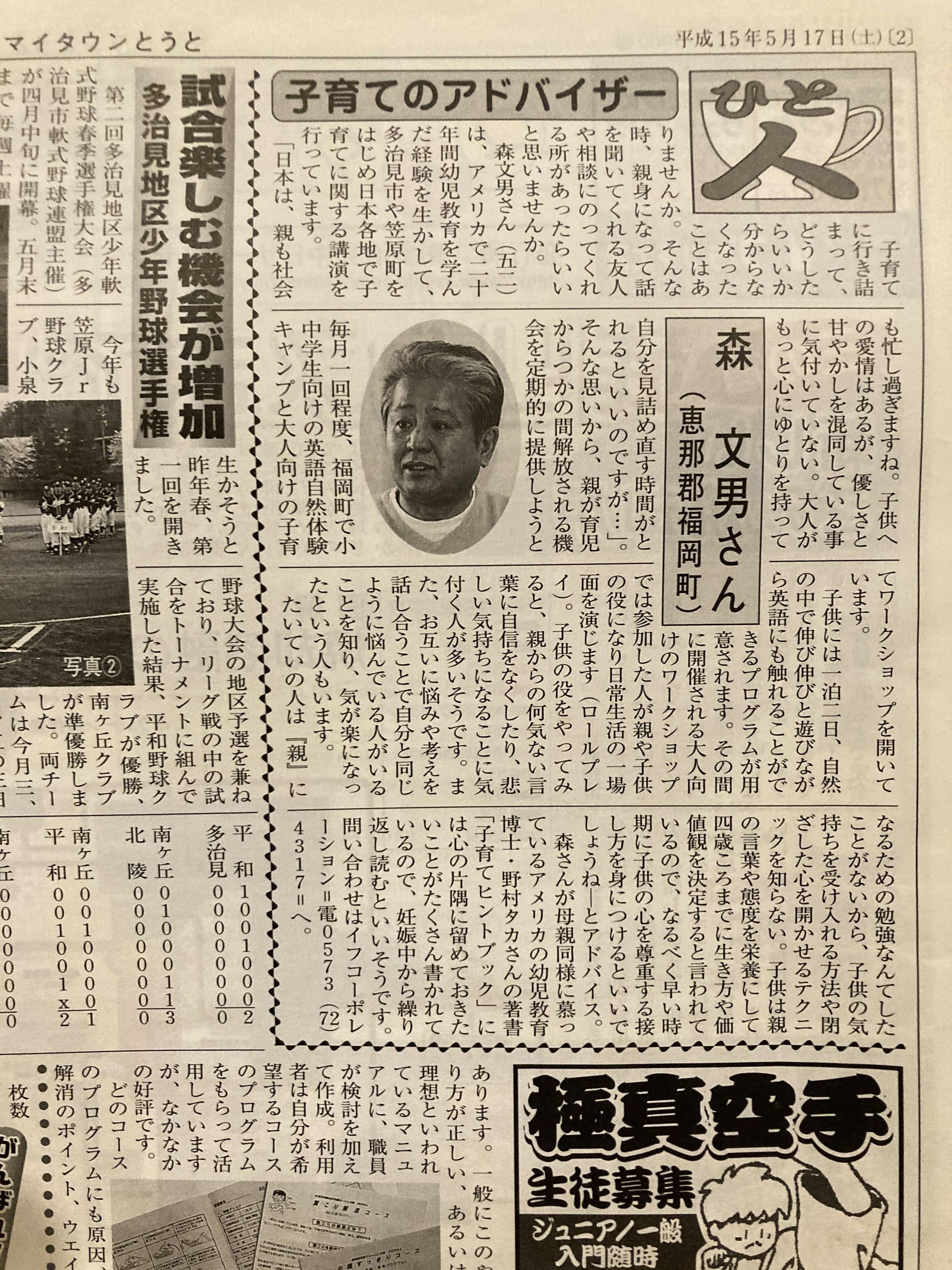 子育て支援: アメリカで絶大な支持を集めた幼児教育者・ノムラタカ氏の教育理念に感銘を受け、2002年に著書『0才〜4才までの 子育てヒント*ブック』の監修を担当。ワークショップ形式を取り入れた独自のアプローチで、これまで数多くの親子の絆を深めるサポートを行ってきました。