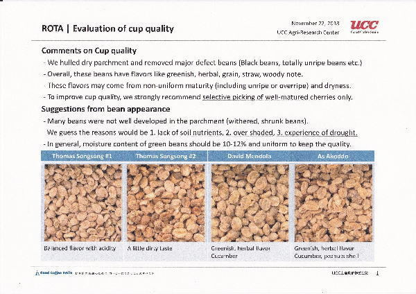 ロタコーヒー豆の品質報告書 from UCC