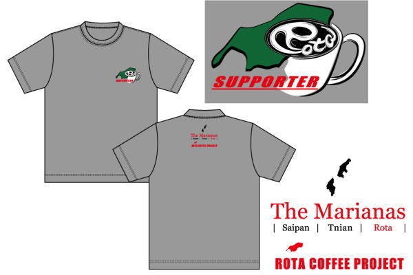 また、背中のワンポイントは北マリアナ諸島におけるロタ島の位置を示したデザインです。ROTA COFEE PRIJECTの文字もプリントしました。