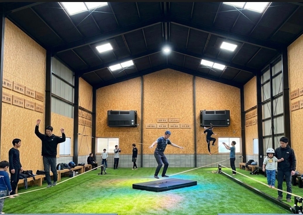世界基準の設備: 日本初上陸となる「スラックライン専用トレッドミル」の導入に向け、代理店との最終交渉を進めています。また、ハイラインやトリックラインの設備もあります。これは基礎動作ができだけなく心身の基礎を練習することができる環境になります。