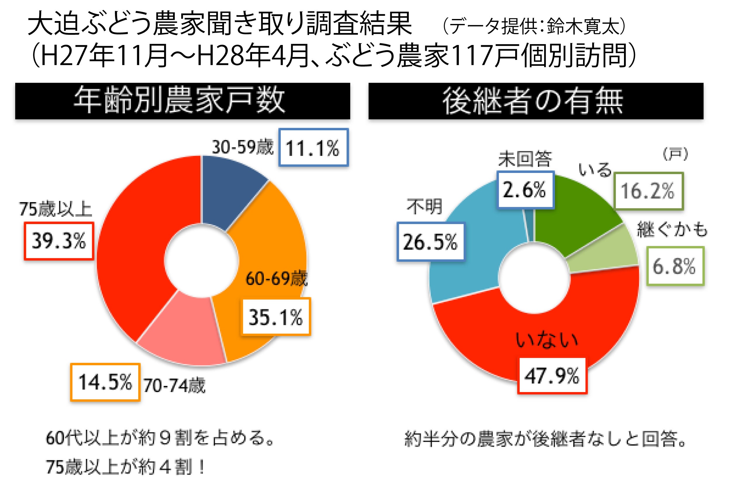 しかし、ぶどう農家の高齢化が深刻です。数年前に157軒あった農家は、現在117軒。しかもその約9割が60歳以上。後継者のいる農家は2割以下。