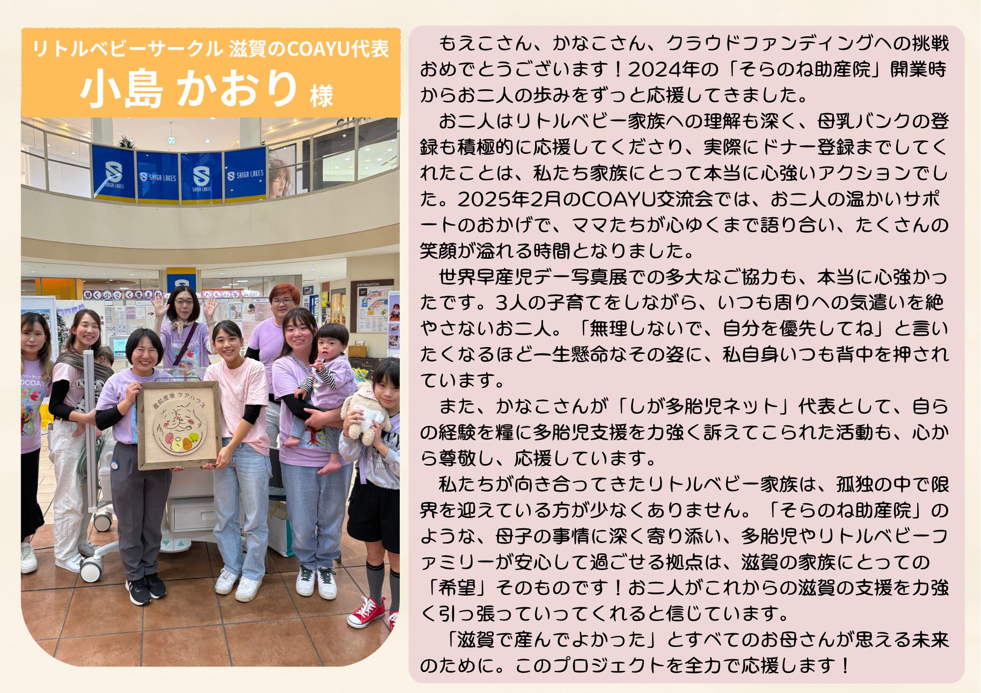 これは、私たちだけで作る施設ではありません。 今のママたち、これから出産を迎える女性たち、そして未来の子どもたちのための、”孤立しない子育て社会”への大きな一歩です。