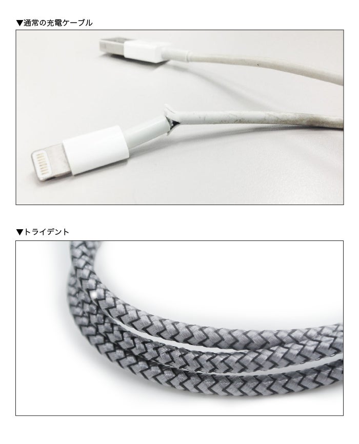 網加工された強化構造により、通常の充電ケーブルの6倍の耐久度を誇ります。