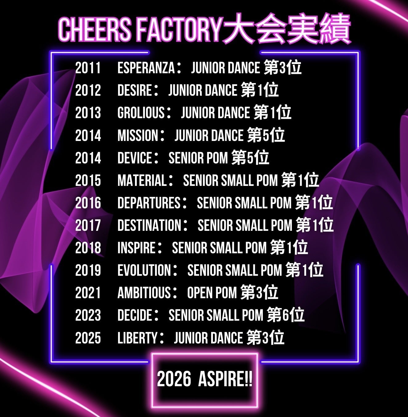 私たちはCHEERS FACTORY、ASPIREの保護者です。