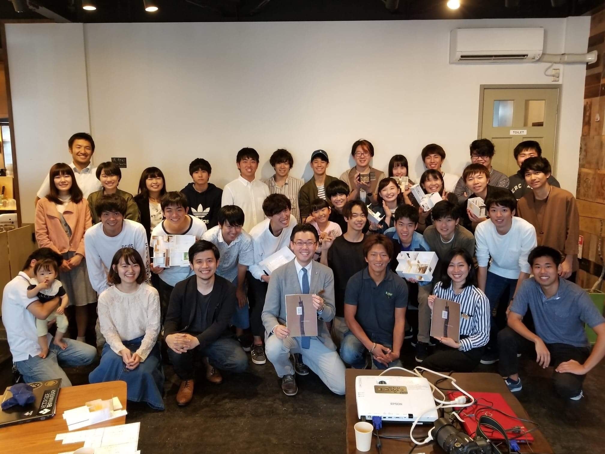 こんにちは、お久しぶりです! コンペ合宿から早いもので1ヶ月半ほどが経ちました…コンペ合宿が終わった後、3回の週末を利用して学生メンバーが湯田中に出向き、林さんのご協力のもとで施工作業を進めてまいりました。そしてついに完成を迎え、10月28日にHAKKOでお披露目会を実施しました! 今回はその様子をお伝えしたいと思います! 学生メンバー、1か月半ぶりの集結! 今回も施工の時と同じで、早起きして集合し、レンタカーを借りて東京を出発しました。 3時間半ほどかけて湯田中に到着。お披露目会の会場であるHAKKOに入ると、そこには別の車で来た学生メンバーたちが。実に1か月半ぶりの再会でした! HAKKOの中は、久しぶりの仲間同士の会話で賑わっていました。その光景は実に微笑ましいものでした…(その様子の写真を撮っておけばよかったと後悔。) お披露目会では、参加してくれた学生メンバー一人一人から今回のコンペについての感想を話してもらいました。 私はメンバーからコンペを通じて感じたことを聞くのはこれが初めてだったのですが、それぞれがこのコンペの内容やコンペを通じて出会った仲間から様々なことを感じ、いい刺激を受けたようでした。「参加してよかった」という声を聞くこともできて、企画した側としてはとても嬉しかったです。 完成したシェアハウスはどんな感じ? お披露目会では、今回のコンペや施行によって完成したシェアハウスの内覧会も行いました。読んでいる皆さんも気になっていると思うので、ここでそのシェアハウスをお見せしたいと思います! まず、こちらがコンペで最優秀賞をとったチームの模型。 これがどうなったかというと… 「共用部に木を置く」という案を実現することができました!施行3週目に行ったメンバーが、4メートルもの高さのある木を頑張って入れてくれたようです。この木にはこれから、シェアハウスの住人たちの思い出の写真や好きなものが木の葉のようについて、増えていくことでしょう。 そのほかにも、こんなビフォーアフターが。 共用部の大きな吹き抜けは白く塗装をし直すことによって、明るくて清潔感のある空間に。 日本の民家によくある和洋風の雰囲気が漂っていたこの部屋は、壁を塗り直し、床や板張りによって木の温かみを感じられるような優しい空間になりました。実はこの板張りは、山ノ内町にゆかりのある高社山がモチーフになっているんです。 完成したシェアハウスを見ながら、「あの時こうだったよね」と、コンペや施工の時のことを楽しそうに話す学生メンバーたち。その笑顔を見た時、「ああ、企画してよかったな」と思ったのでした。 リノベコンペ企画第一弾、大成功! 今回のお披露目会で、山ノ内町建築リノベコンペの企画はおしまい。 参加してくれた学生メンバーのみんな、支えてくださった大人の皆様、そしてクラウドファンディングで支援をしてくださった皆様、このコンペに関わってくださったみなさまのおかげでここまで来ることができました。みなさまに心から感謝致します。本当にありがとうございました! 最後に 第一弾はひとまずこれで終わりですが、これから施工対象を変えて、メンバーを変えて、第二弾、第三弾と続いていくかもしれません。というか、続いていってほしいなと思います。 意欲のある学生が地域に出向き、そこで人と出会い、みんなで一つのものを作り上げる。今回はそれがたまたま建築だっただけであって、他のものでもいいと思います。この企画をきっかけに山ノ内町がもっと元気になり、そして山ノ内町だけでなく、日本中の他の地域にもこのような流れができるといいなと思います。 もしこの企画の続きや他の地域での似たような企画があって、また興味を持っていただけるのであれば、応援していただけると嬉しいです。そして、もしそのような機会があるのであれば、ぜひ企画に参加してみてください。そこでしか出会えない人、知ることができないことがあるはずです。 長野県山ノ内町建築リノベコンペ企画 / 明治大学理工学部建築学科3年 石渡萌生