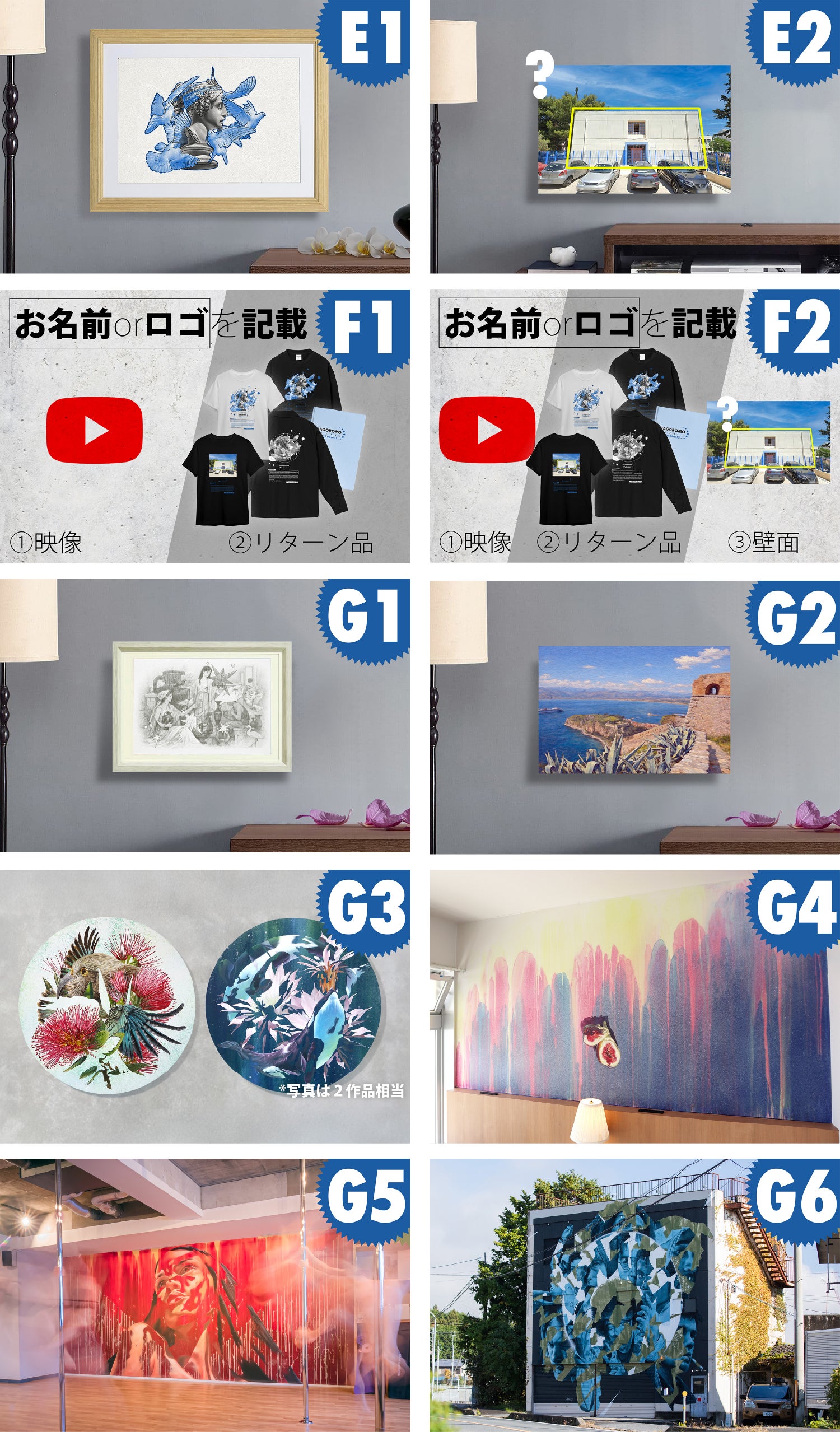 この機会にしか手に入らない特別なオリジナルグッズやアパレルの数々、キャンバス作品や/壁画制作など、様々なものをご用意しました。お気に入りを見つけてください!