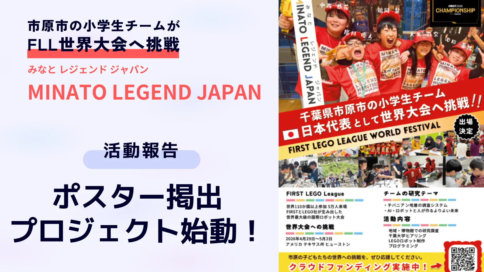 2026/03/24 07:00現在、FLL世界大会に向けた活動の一環として、JR市原市内3駅にてチームポスターの掲出を行いました。まずは、市原市役所 土木管理課様へ掲出許可をいただきに伺いました。「駅のポスターって自由に貼っていいわけじゃないんだね。」許可シールをペタリ大人にとっては当たり前のことも、子どもたちにとっては、自分の手でやってみて初めて気付く大切な学びです。メンバーとともに駅を回り、自分たちの挑戦を多くの方に知っていただけるよう、一枚一枚心を込めて掲出しました。JR姉ヶ崎駅JR八幡宿駅JR五井駅また、地域企業の皆さまにもご協力いただき、各所でポスターを掲示していただいております!「●●でLEGEND JAPANのポスター見たよ!」と声を掛けていただくことも増えてきました。とても嬉しいです。温かいご支援をいただき、本当にありがとうございます。3月23日時点の掲出協力先様をご紹介いたします。---------------------------■ポスター掲出ご協力先(五十音順・敬称略)【企業・店舗】ステーキのあさくまイタリアンレストラン キャトルイチハラタイヤワークスウエルシア 市原国分寺台店Uta&Bar 5・1・5おおもりや京葉学院クロワッサン五井キャピタルホテル五井会館小湊鐵道株式会社こみなと待合室ボートピア市原×サテライト市原スシロー 五井店SOMARU大丸商事大衆居酒屋 やおまつ大衆中華酒場 むねまさデニーズ 五井店デイリーヤマザキ 五井駅前店東明堂漢方薬局ネッツトヨタ千葉 市原国分寺台店にく美日産プリンス千葉 市原店ひより整骨院ホシノ薬局 五井駅前店ホシノ薬局 本店ホテルスワンレイク長柄マクドナルド 国分寺台店ミミスイミングクラブ市原宗田歯科クリニック宗田マタニティクリニックやます本店夢ホール渡邉歯科医院Hair LaboHonda Cars 市原 五井中央店Personal Training Studio K【公共施設・学校団体等】いちはら子ども未来館 weほーる市原市立国分寺台小学校市原市立国分寺台中学校市原市立若葉小学校五井公民館五井認定こども園つぼみの森保育園 第一つぼみの森保育園 第二森の幼稚舎森の保育園森の保育園 第2----------------------本当にありがとうございます!地域の皆さまに支えていただいていることを実感しながら、子どもたちは世界大会に向けて日々 英語プレゼンの練習やモデルの改良に取り組んでいます。引き続き応援のほど、よろしくお願いいたします。MINATO LEGEND JAPAN 事務局。.ꕤ⌒⌒⌒⌒⌒⌒⌒⌒⌒⌒ꕤ⌒⌒⌒⌒⌒⌒⌒⌒⌒⌒ꕤ.。市原の小学生たちが、世界の舞台に挑戦します。この挑戦は、子どもたちだけでは実現できません。地域のみなさま、応援してくださるみなさまの力があってこそ、子どもたちは世界へ踏み出すことができます。 「市原から、世界へ。」その一歩を、ぜひ一緒に応援していただけたら嬉しいです!温かいご支援・シェアをどうぞよろしくお願いいたします。。.ꕤ⌒⌒⌒⌒⌒⌒⌒⌒⌒⌒ꕤ⌒⌒⌒⌒⌒⌒⌒⌒⌒⌒ꕤ.。 もっと見る