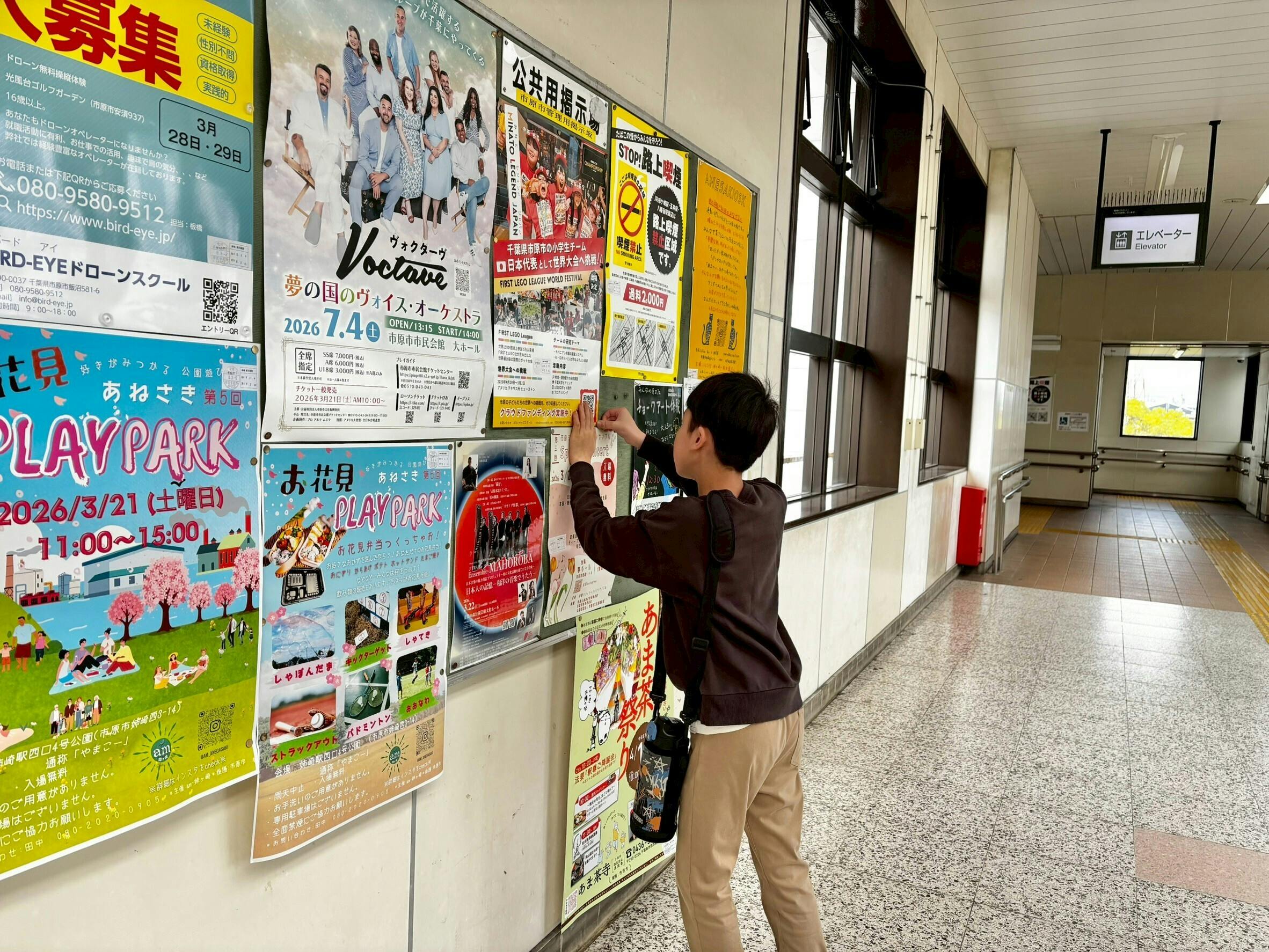 メンバーとともに駅を回り、自分たちの挑戦を多くの方に知っていただけるよう、一枚一枚心を込めて掲出しました。