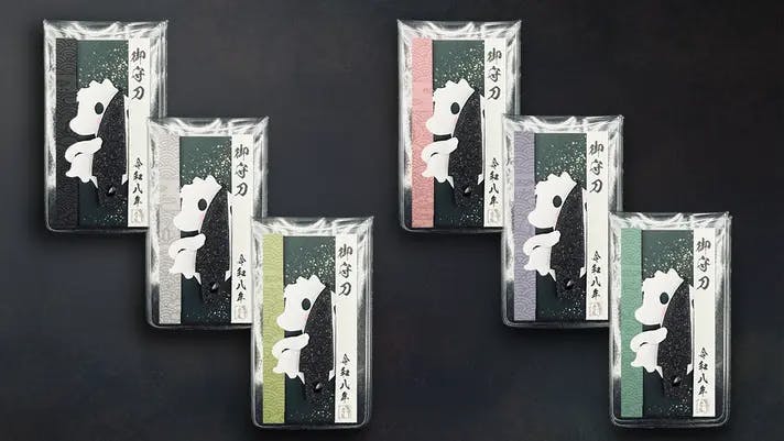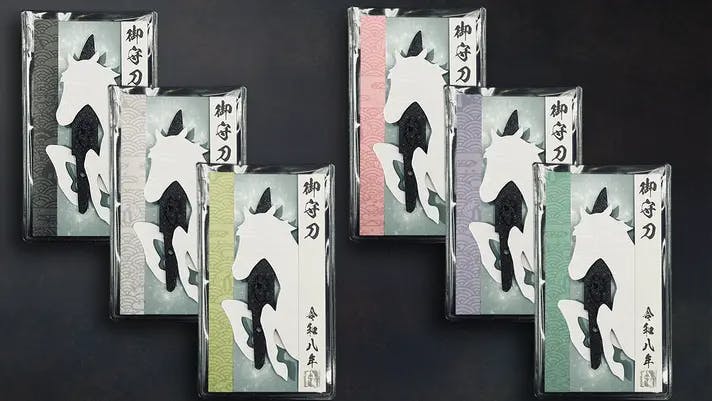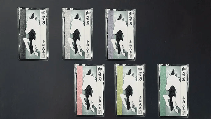 今回の⽩馬バージョンには、2種類のデザイン、2種類の⼑⾝サイズ、そして全6色のカラーをご用意しました。
