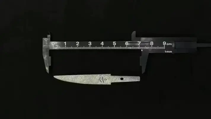 HITOFURIの「御守型ひとふり」は、日本刀と同じく、備前長船の刀鍛冶が玉鋼を素材に制作し、 手作業の限界とも言えるサイズで、刀身の形を再現しました。