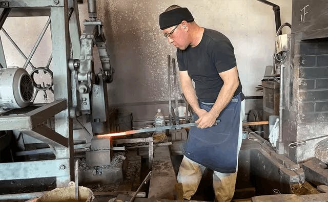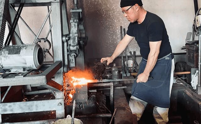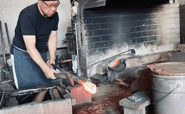 ‧⼿がけるのは、1400年以上の伝統技能を継承する備前⻑船の⼑鍛冶、安藤広康。