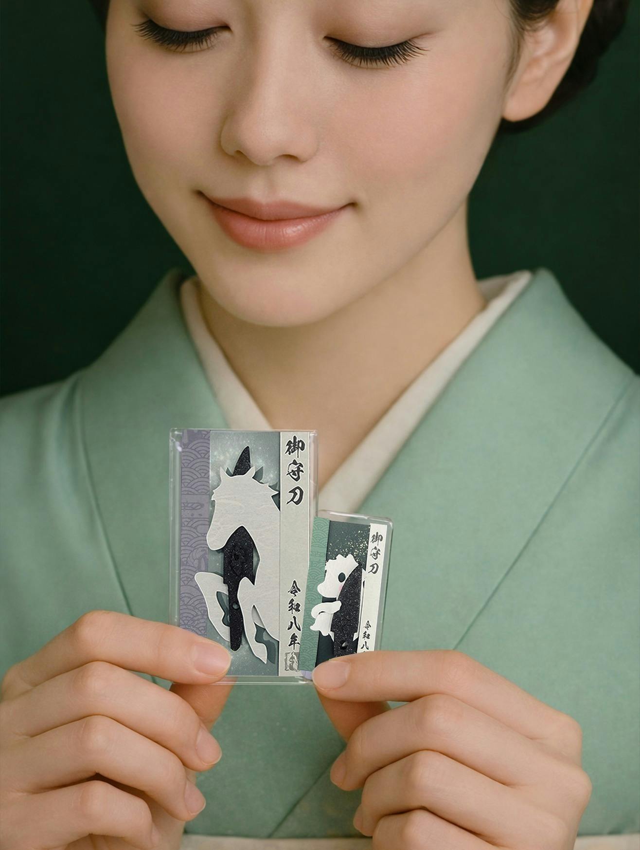 どちらの⽩馬も、⽇本⼑鍛冶の粋を尽くした⼩さな御守り⼑と合わさり、デザイン性が⾼い⼀品となりました。2026年の⼲⽀「午(馬)」による縁起の良さを、お財布やポーチに忍ばせながらぜひご体感ください。あなたの毎⽇を、⽩馬と⼑鍛冶の⼒がそっと⽀えてくれることでしょう。