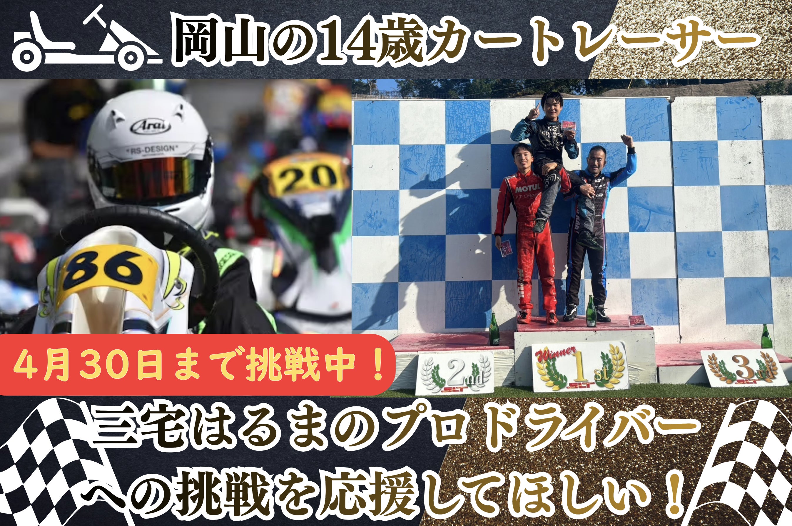 岡山の14歳カートレーサー三宅ハルマのプロドライバーへの挑戦を応援してほしい!