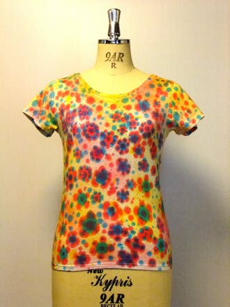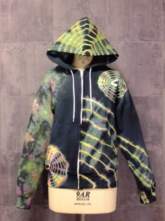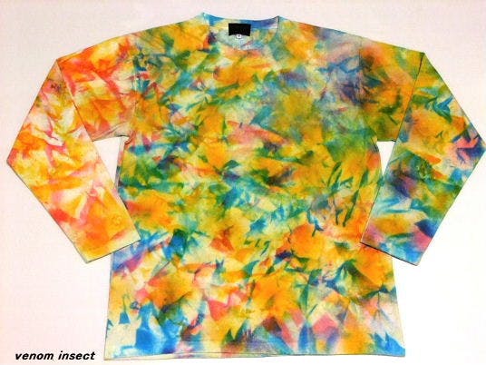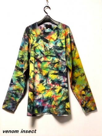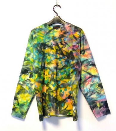5日にライブツイートで染色したTシャツです。 本日は八時頃から染めのライブツートいたします、また九時からは染色のリクエストをお受けして制作いたします、是非ご参加下さい。