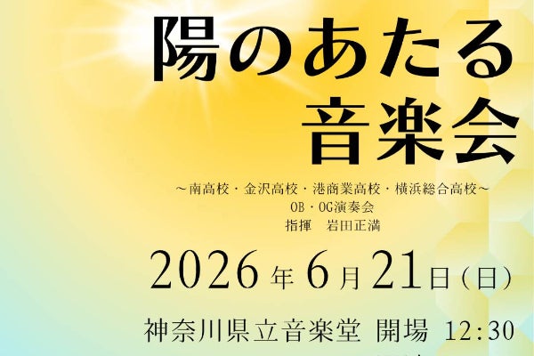 2026年 6月 21日に神奈川県立音楽堂にて、開場12:30 開演13:00に「陽のあたる音楽会」~南高校・金沢高校・港商業高校・横浜総合高校 OB・OG演奏会~を開催します。