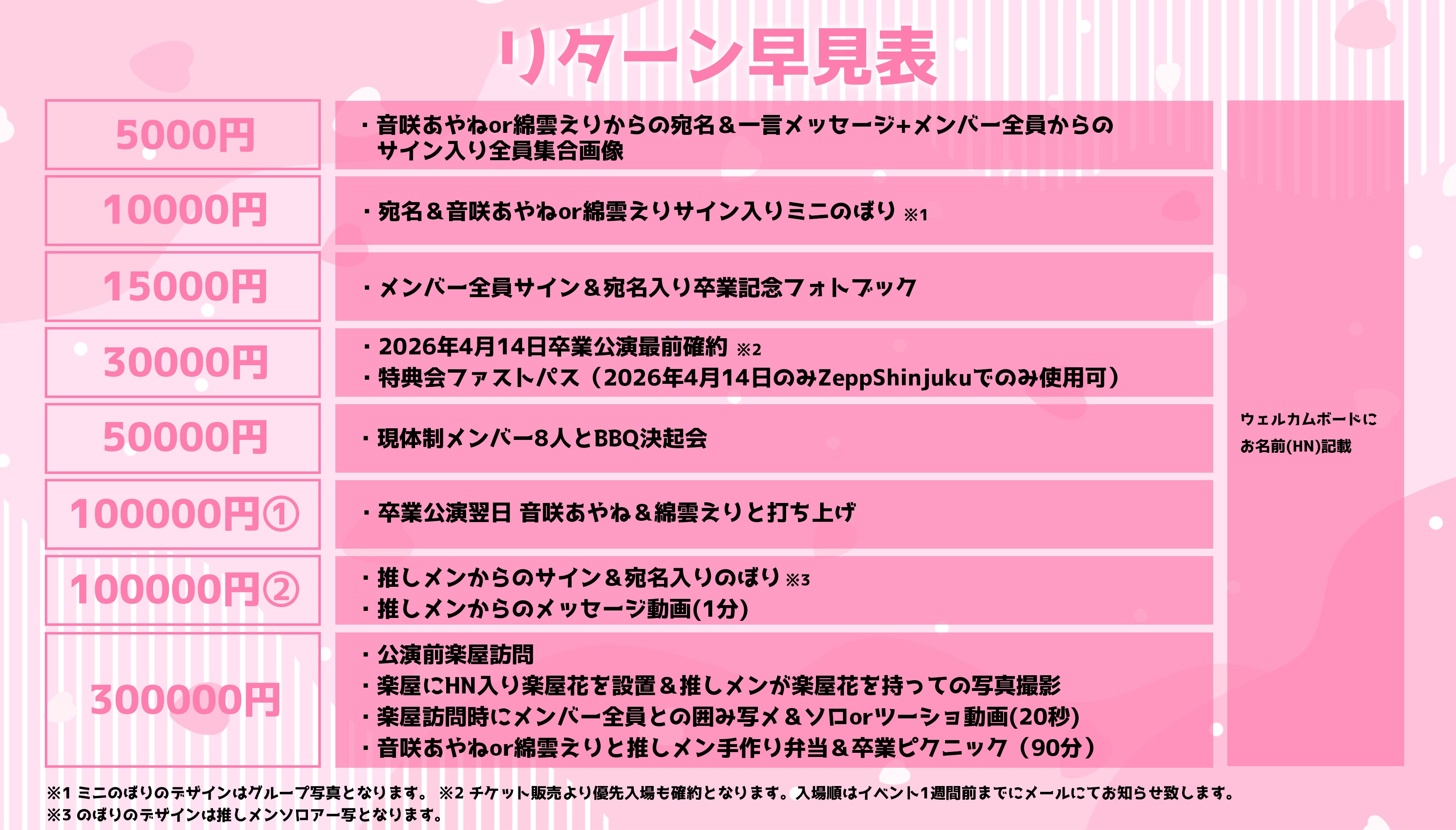 そして今回、支援額に応じて卒業ライブをさらに豪華にグレードアップさせていただきたいと思っています。