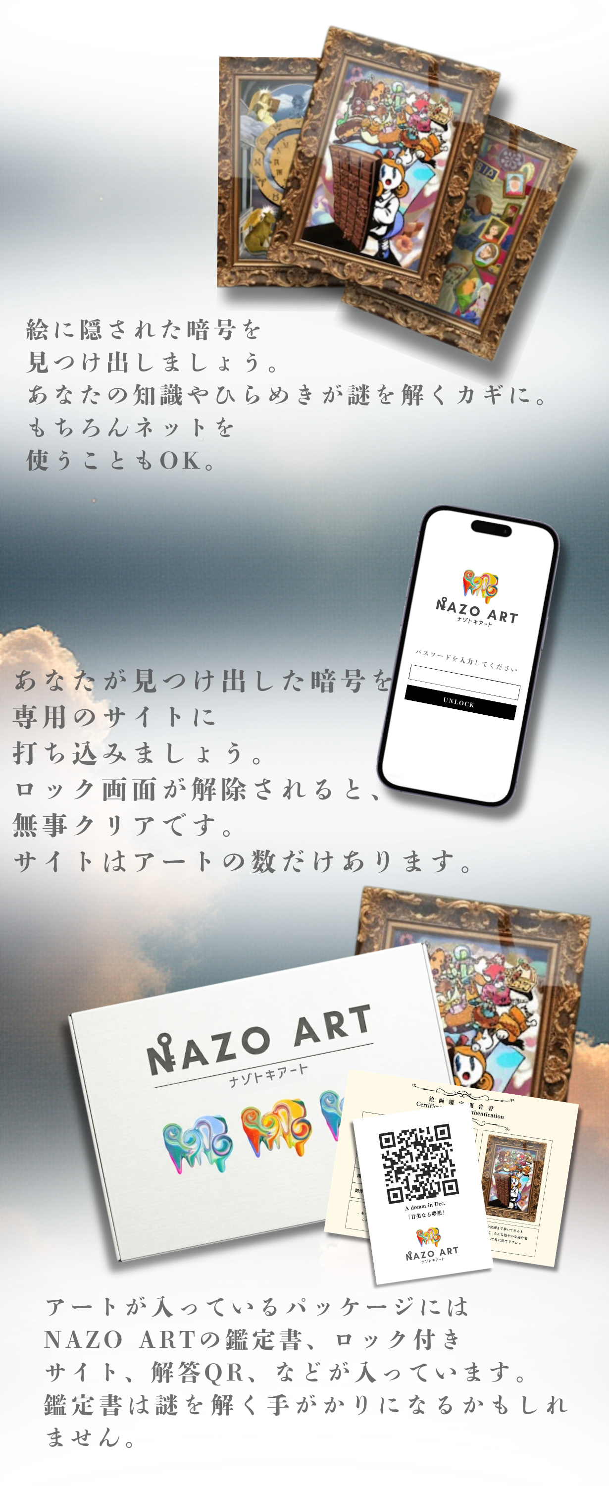 ※このアートのみ、付属の資料があります。上手く使い謎を解き明かしましょう。