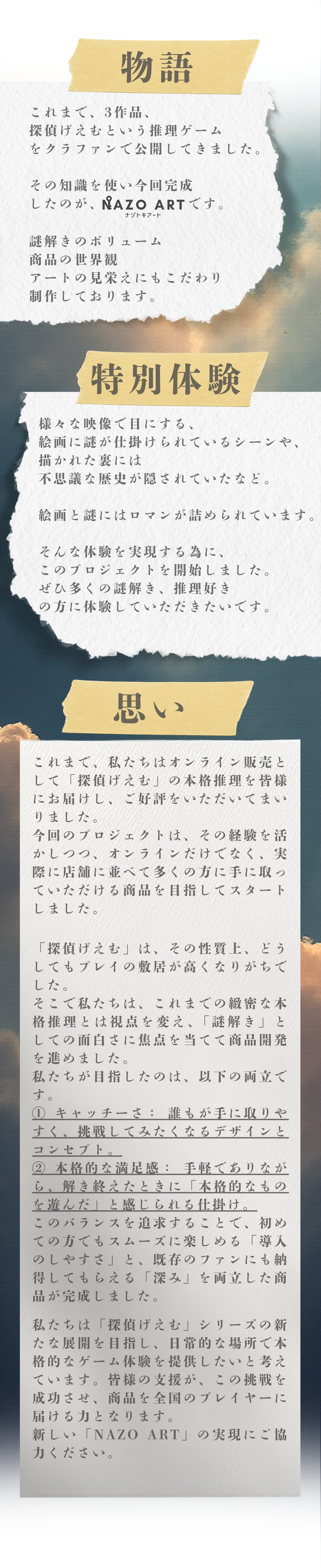ご支援いただいた方々へシンプルな謎解きをお送りします。