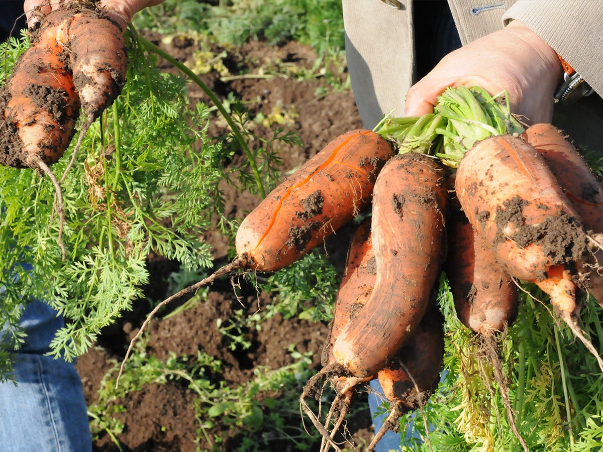 有機栽培は化学合成農薬に頼れないため、土の中の小さな虫「線虫」の影響で、にんじんが曲がったり割れたりしやすくなります。