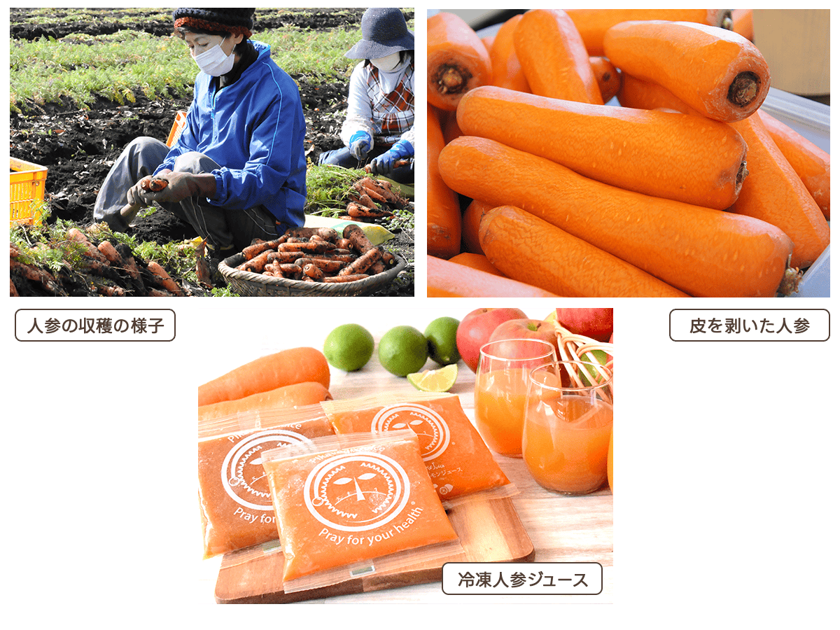 私たちは、志ある有機農家の皆さんから買い付けた規格外人参を、決して無駄にしません。